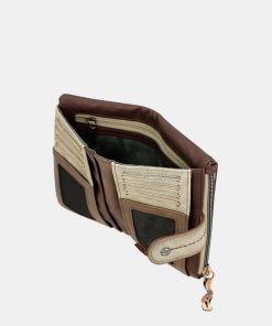 This medium-sized wallet is made of flexible material, has two main compartments: the back, where you will find a large billfold and space for banknotes and/or cards. It has a zip at the top, and inside you can keep coins. The entire interior is lined.