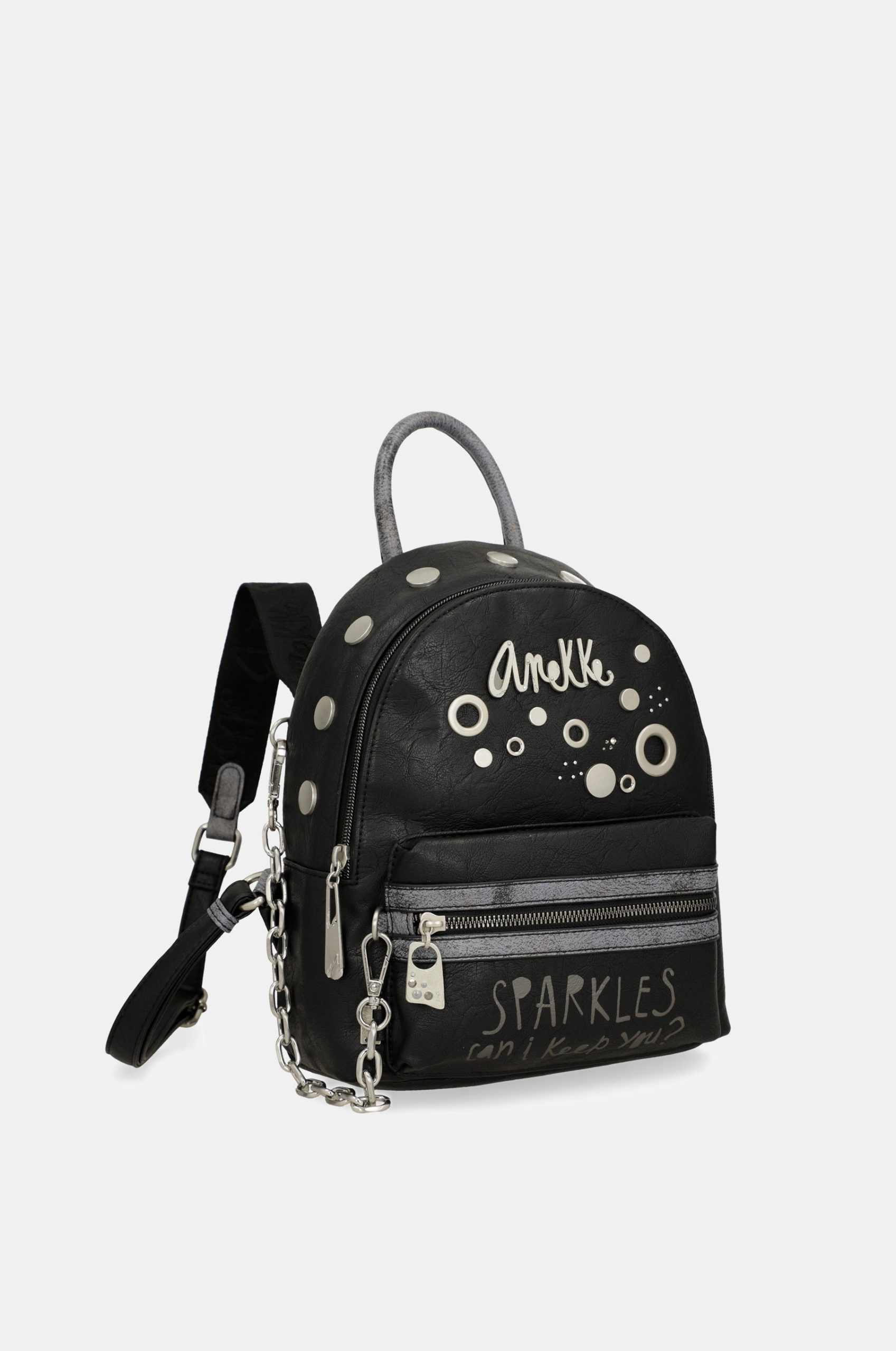Ready to take a trip to the centre of the earth with Anekke Core? Anekke Core is a tribute to the Danish seismologist Inge Lehmann, an important scientist who proved that the earth is composed of 4 layers and that its centre (Core) is liquid and solid. Each line in this collection is inspired by one of these layers.This product is part of the Crust line, inspired by the fourth and most superficial layer of the earth. Its design combines a black base with an earthy white overlay, which creates an original rock effect. The Anekke logo becomes the protagonist of some parts, where we will find decorative elements such as fossil-inspired rhinestones, as well as customised studs, handles and pins.