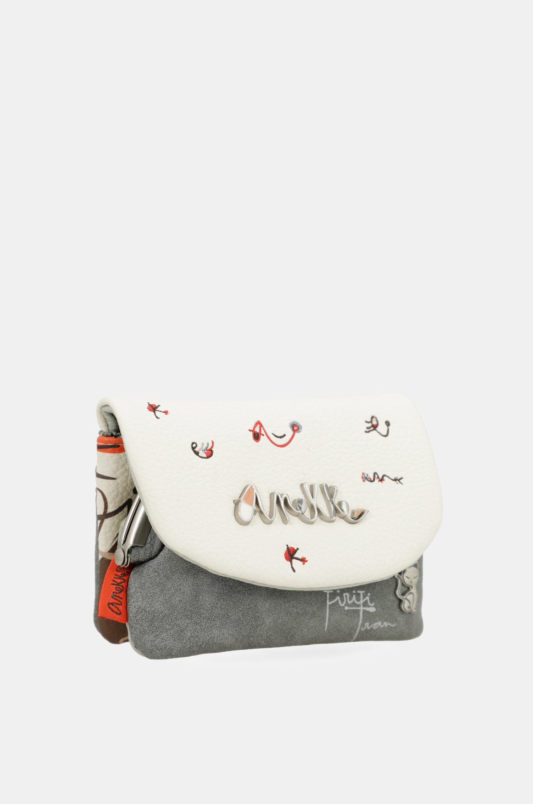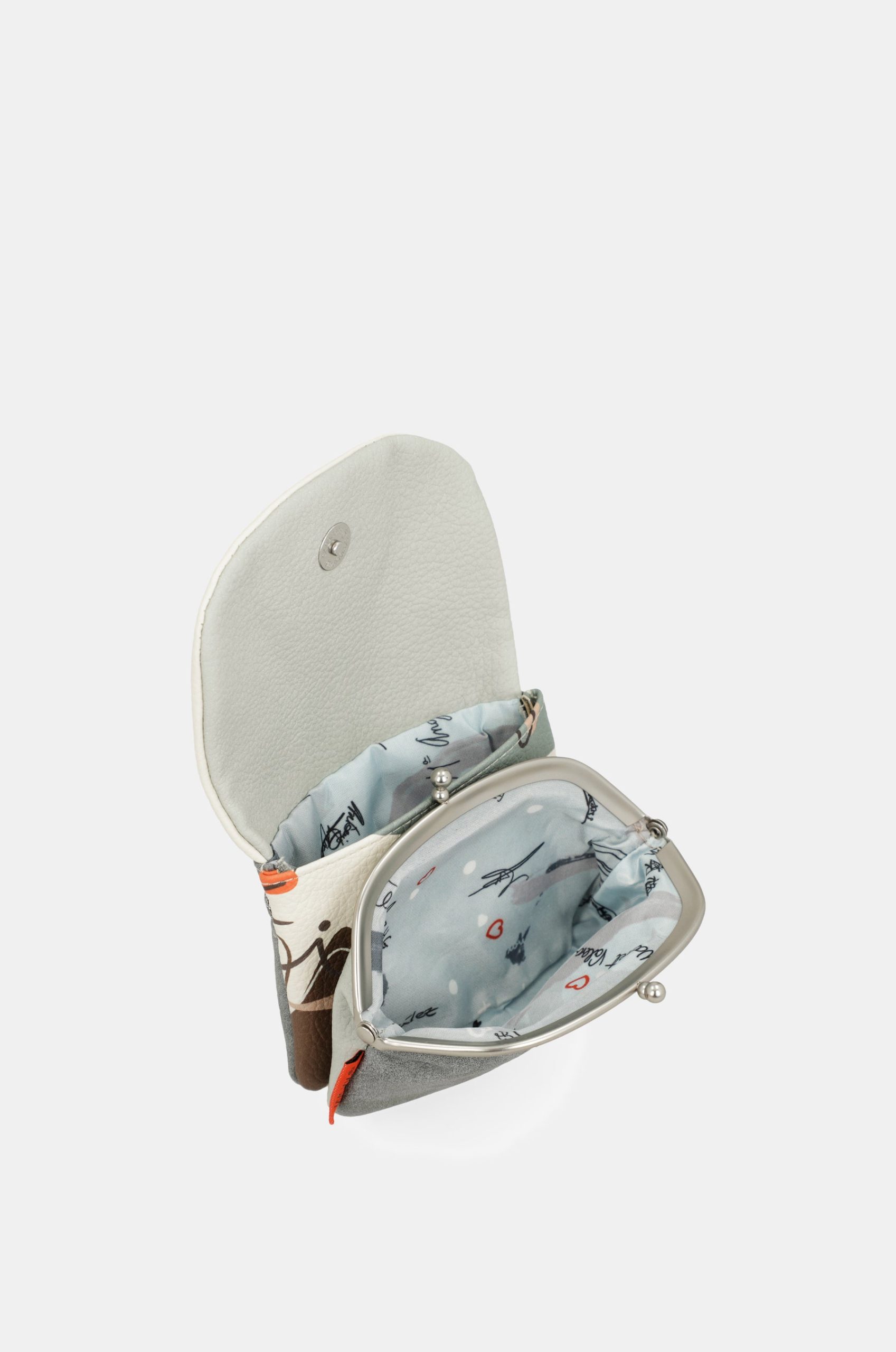 This product is part of the Ole line. This capsule is inspired by the joy of the Spanish character, often expressed with exclamations like “olé,” which we use to say something is beautiful or well done. Hands are one of the main elements of the print, as we use them to express ourselves or to dance, with artistic touches inspired by Miró and music-inspired phrases. This coin purse is a flap style, revealing two compartments when you open it: one with a kiss-clasp closure, plus a back compartment. It also has a zippered pocket at the back. The entire interior is lined. Because nothing has more charm than the soul. And your new favorite from Anekke will remind you of that every day. Get yours now!