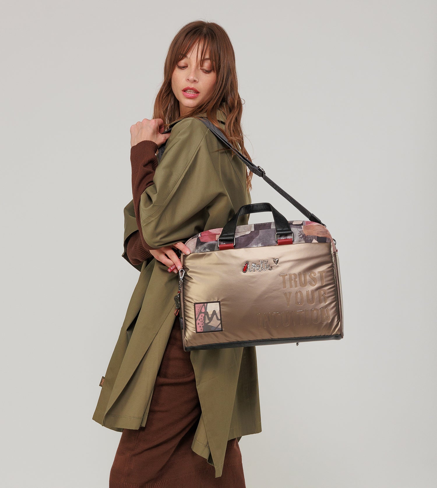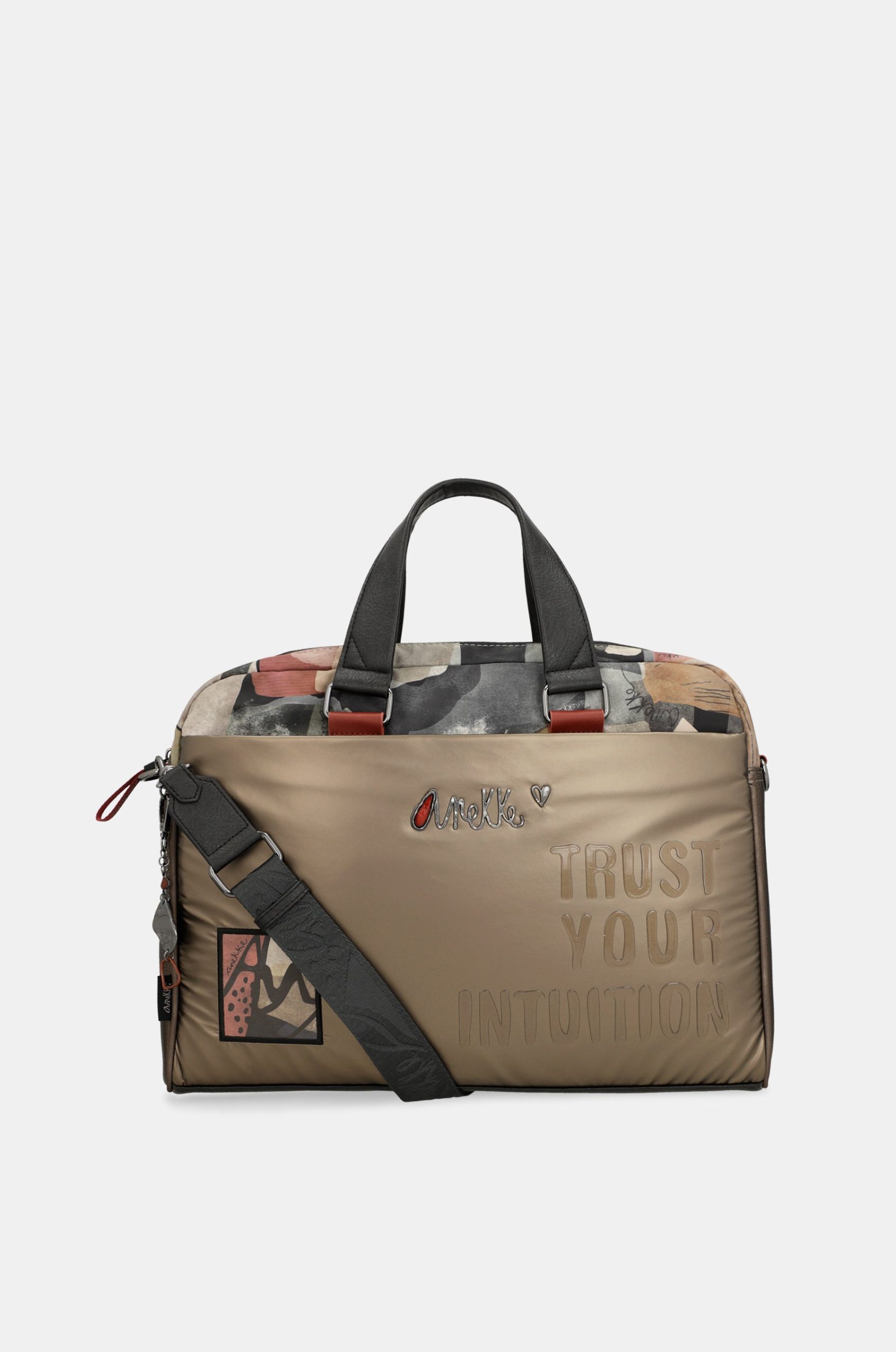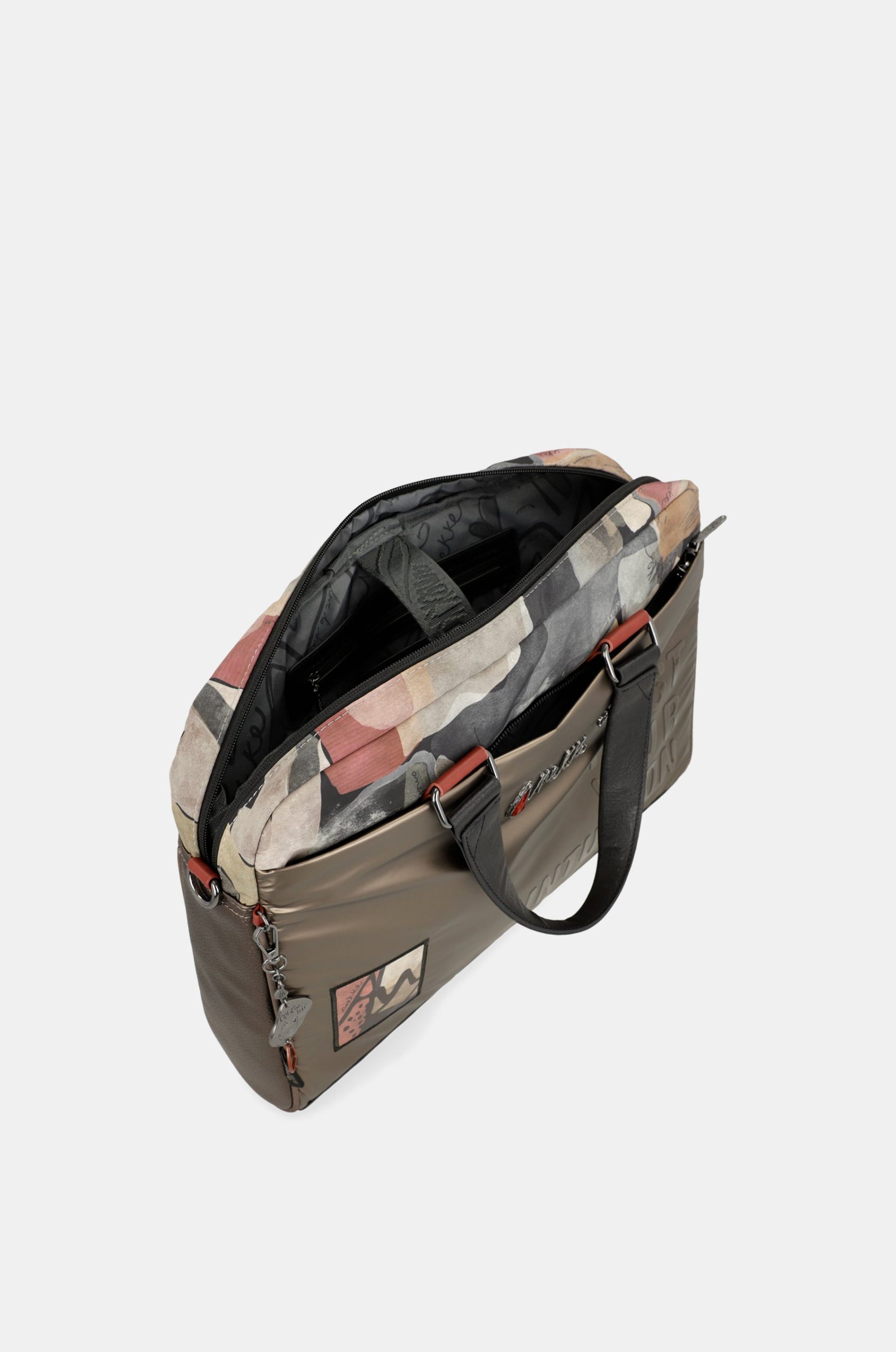The Nature Imaginary capsule is part of the Anekke Dreamverse collection, inspired by a journey to the centre of the Earth through imagination. This collection, made with 80% recycled material and 100% love for the Planet, has been awarded the Control Union Certifications B.V. seal. This modern line in reddish, white, grey and black tones is inspired by geometric lines and shapes, in which animals, wings, shells, rocks and other fossilised elements are represented. This format features a soft, comfortable material with embossed phrases emulating a resin-inspired effect. These phrases will remind you of the importance of taking care of the Planet on a daily basis, because every little gesture counts, start with your accessories!