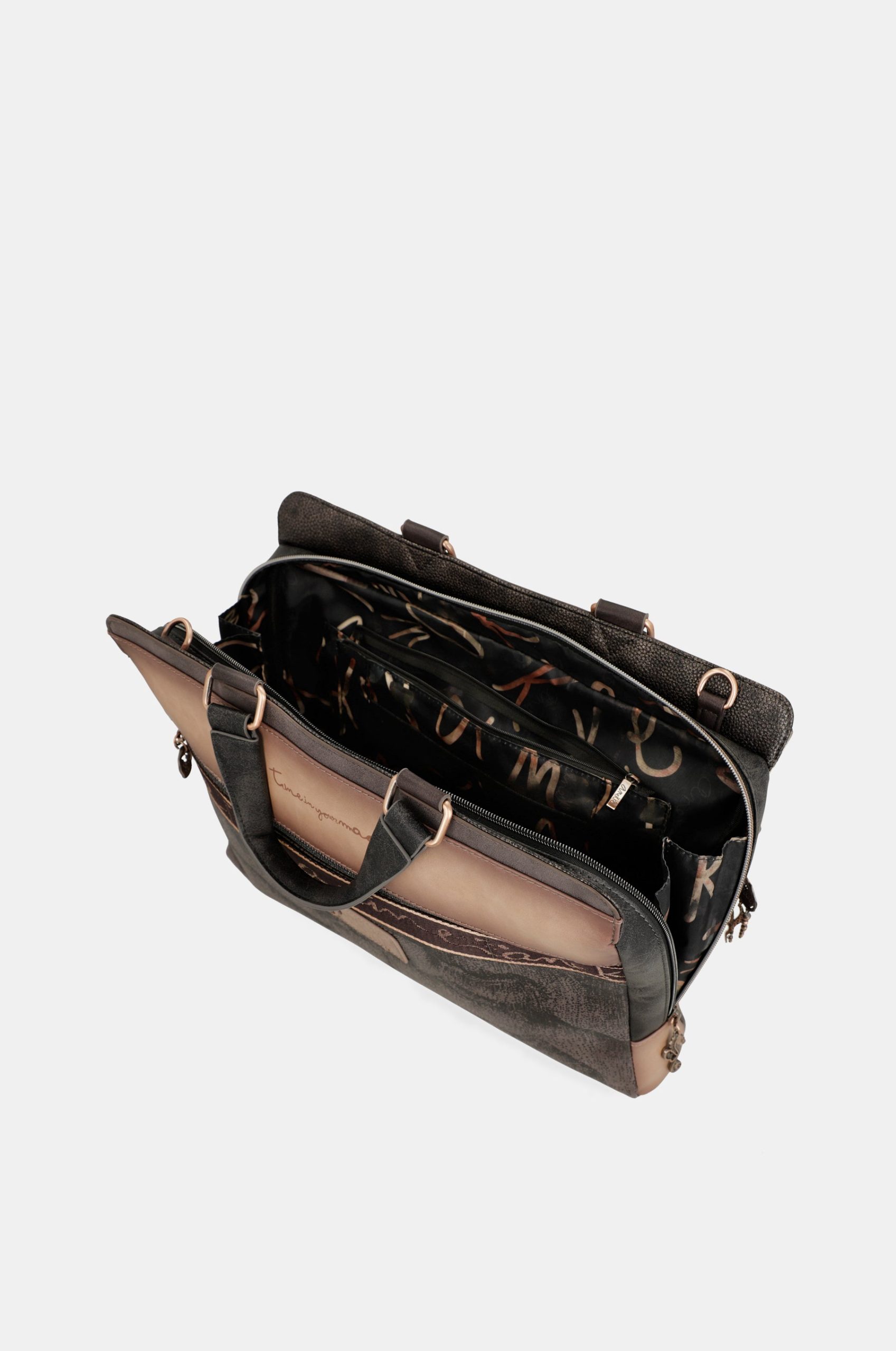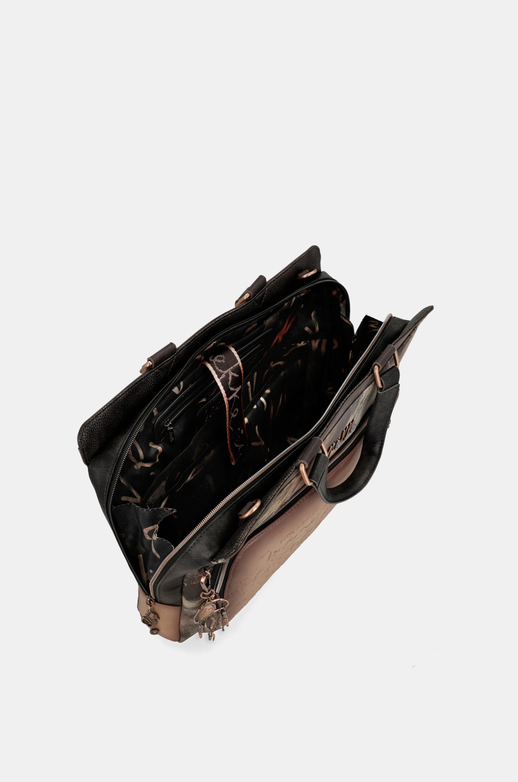 This women’s work briefcase has a unique personality. It opens in the middle using a zip, and its interior is lined and padded to protect your electronic devices (suitable for 13″ computers). Inside, it has several compartments with dividers for added convenience, as well as pockets. There is another pocket on the back. It has two hand handles and an adjustable shoulder strap. You choose how to wear it! It has two hand handles, and you can add the adjustable shoulder strap for added comfort.