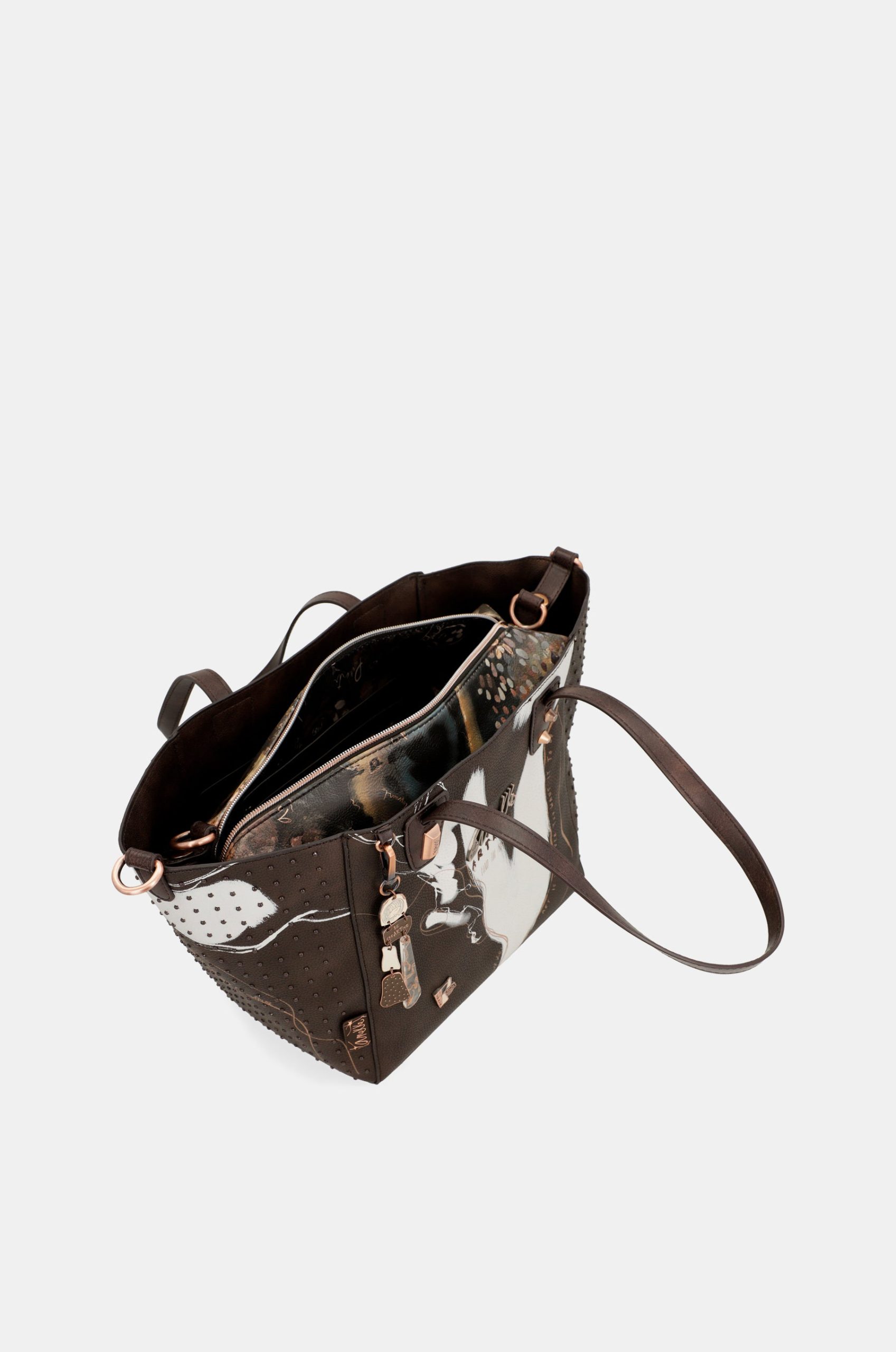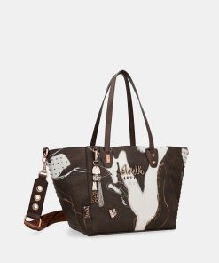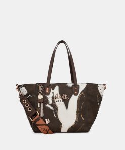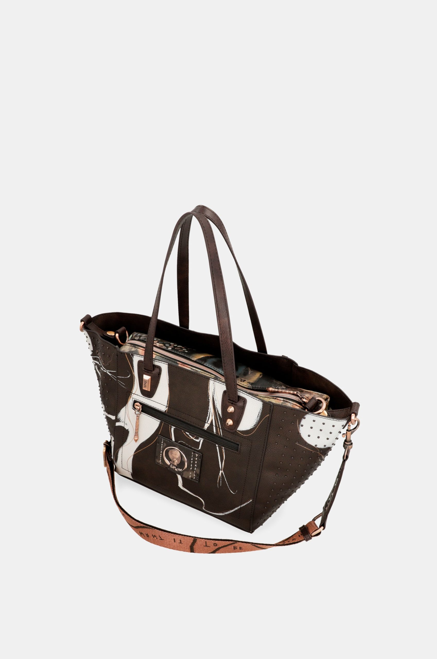 This original large brown shopper bag is a perfect 2-in-1, allowing you to use it every day as you prefer. The exterior is a roomy shopping bag with a removable pouch inside. The shopper has two handles, but you can also add a shoulder strap adjustable to different lengths. This shoulder strap can also be incorporated into the bag that serves as an inner lining, so you will have 2 bags in 1. The inside of the bag is lined.