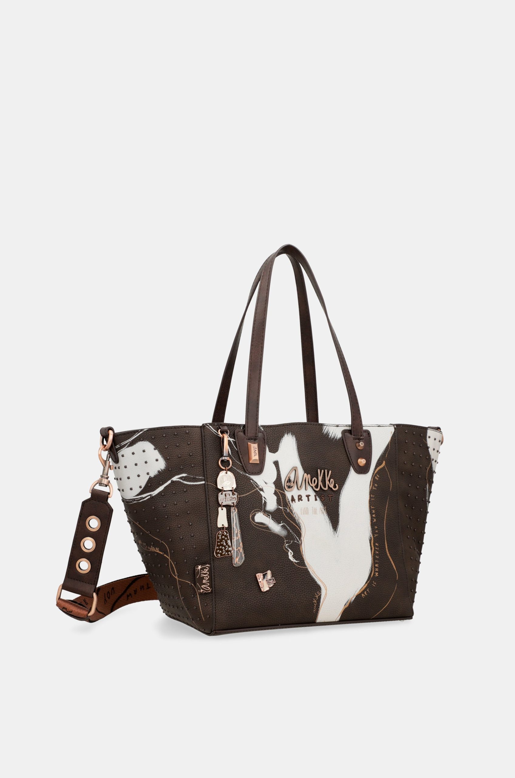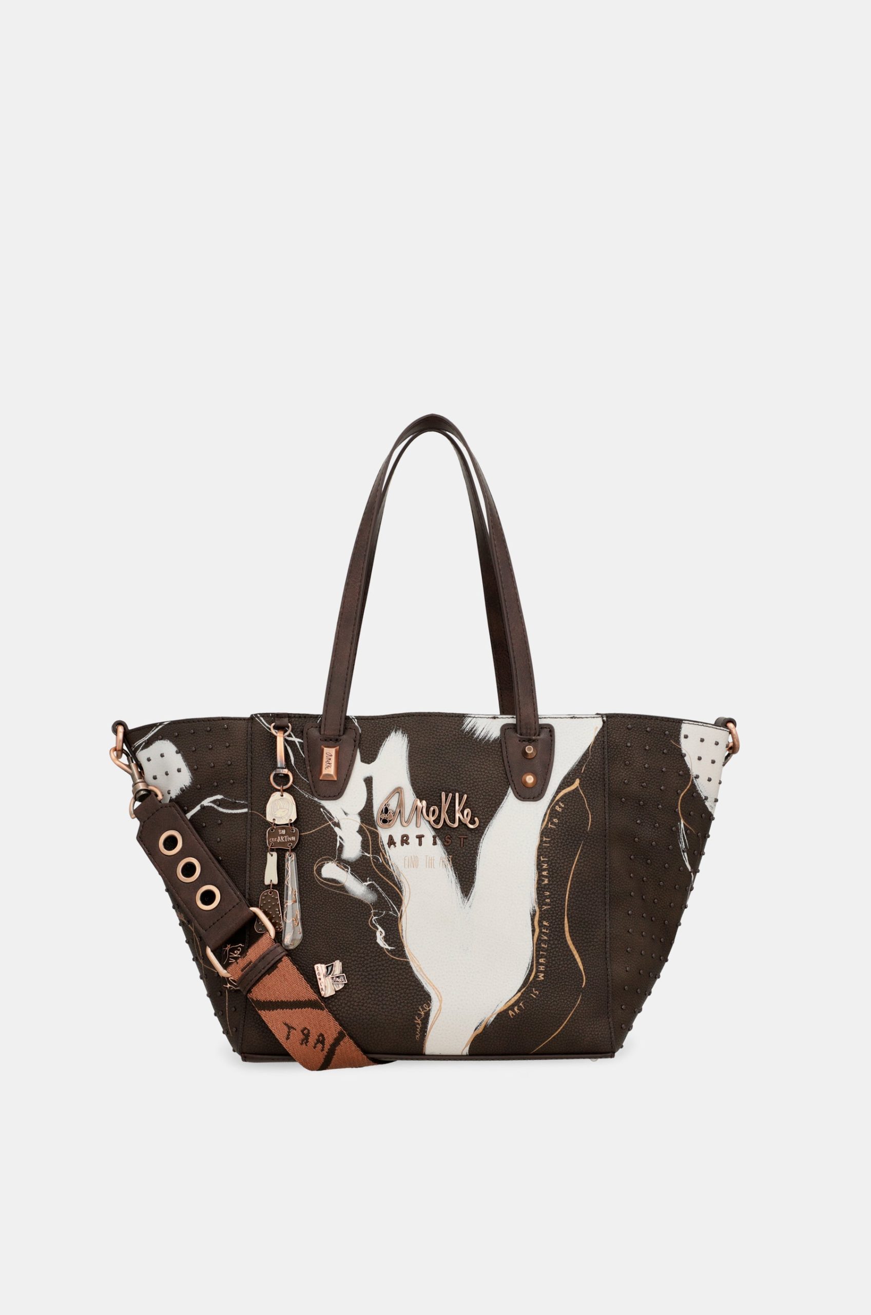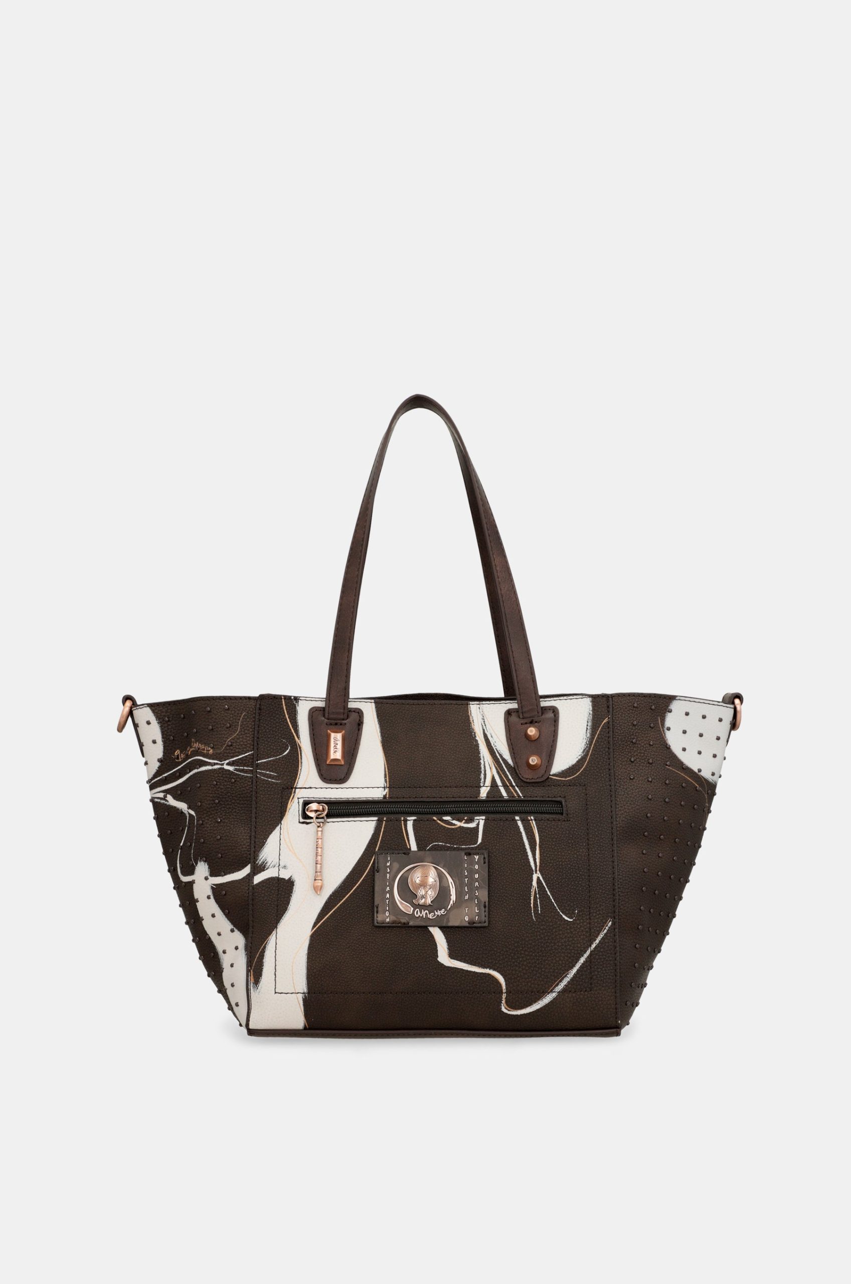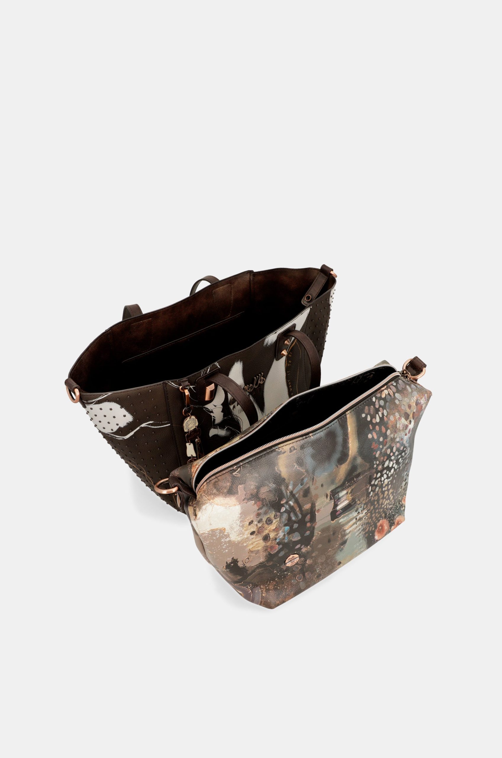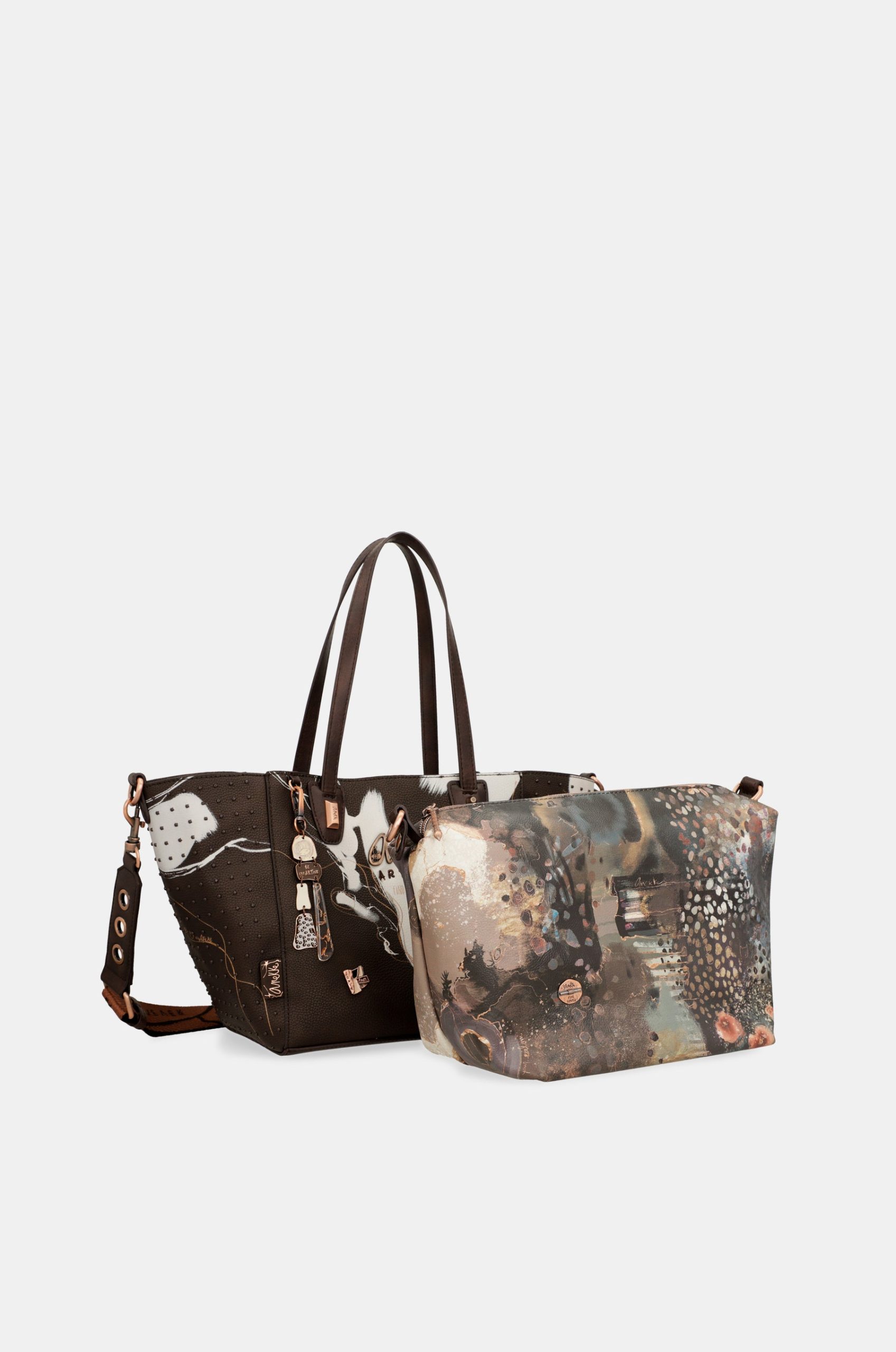 Each product in this collection is like a blank canvas on which an emotion is painted. The designs in this line have been created one by one, “painting” the print of each bag as if it were a unique 360º painting. In addition, on each model you will also find golden lines inspired by the “kintsugi” technique, the art of repairing something broken by emphasising its fractures, to create a new target that is more beautiful than the original. And of course, the details that make each piece unique. Inspirational phrases, metallised logos, personalised handles, studs, pins…. Can you imagine having an exclusive bag, like a work of art? With this collection it’s possible!