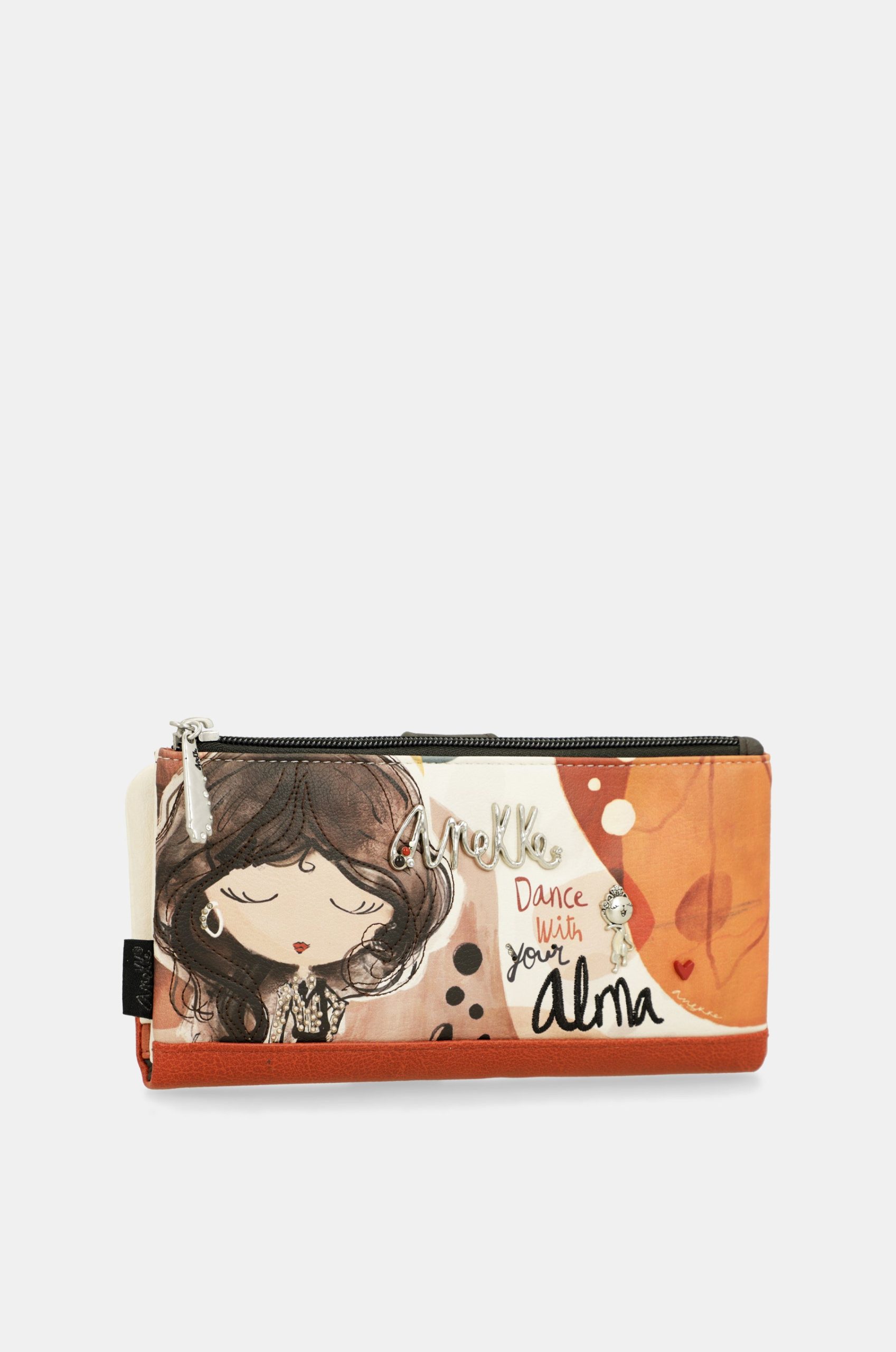 Anekke Alma is a collection inspired by a journey through Anekke’s homeland: Spain. Every small detail is inspired by the roots, culture, and richness of Spain. Reinterpreted polka dots and fans, cheerful colors, and countless nods to our traditions will be your ticket to a journey like no other: with soul. This large-sized wallet is made of flexible material. It has two main compartments: the back, where you will find a large billfold and space for banknotes and/or cards. It has a zip at the top, and inside you can keep coins. The entire interior is lined. It also has a removable card holder inside. It is, without a doubt, a tribute to the country that saw Anekke grow up. Because there are journeys made with the soul, and this one begins in the country Anekke calls home. Ready to dance with soul? Get your new favorite now!