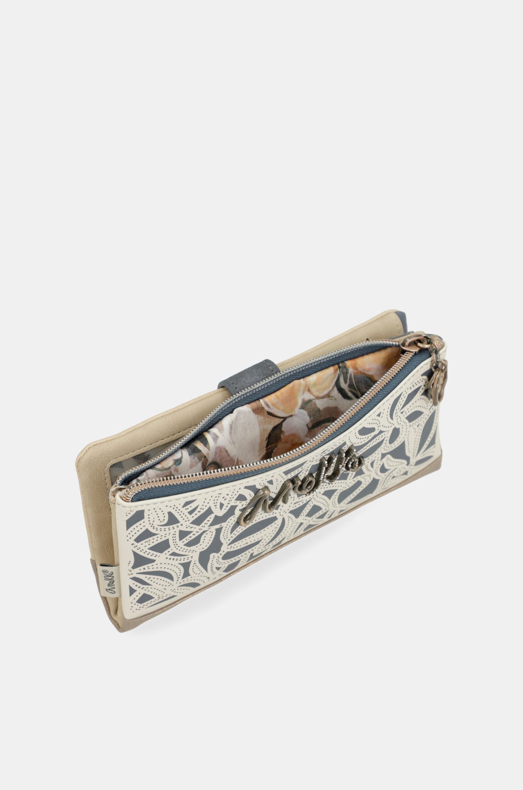 This product is part of the Stories line, inspired by a radiography of memory, those visual snapshots that build our recollections. The print and details of each product are inspired by nature and animals, with nods to the Jungle and Amazonia collections, while maintaining the warm and artisanal touches of Mediterranean. This large-sized wallet is made of flexible material. It has two main compartments: the back, where you will find a large billfold and space for banknotes and/or cards. It has a zip at the top, and inside you can keep coins. The entire interior is lined. It also has a removable card holder inside. Because memories inspire the future, get ready to enjoy them with Anekke!