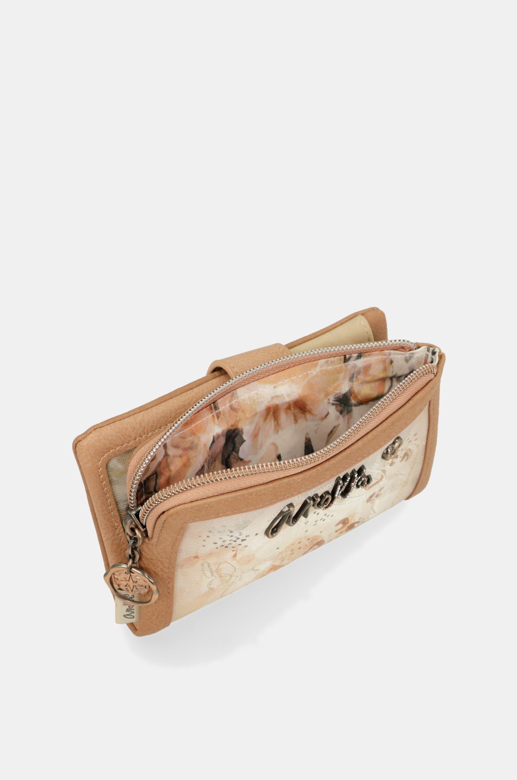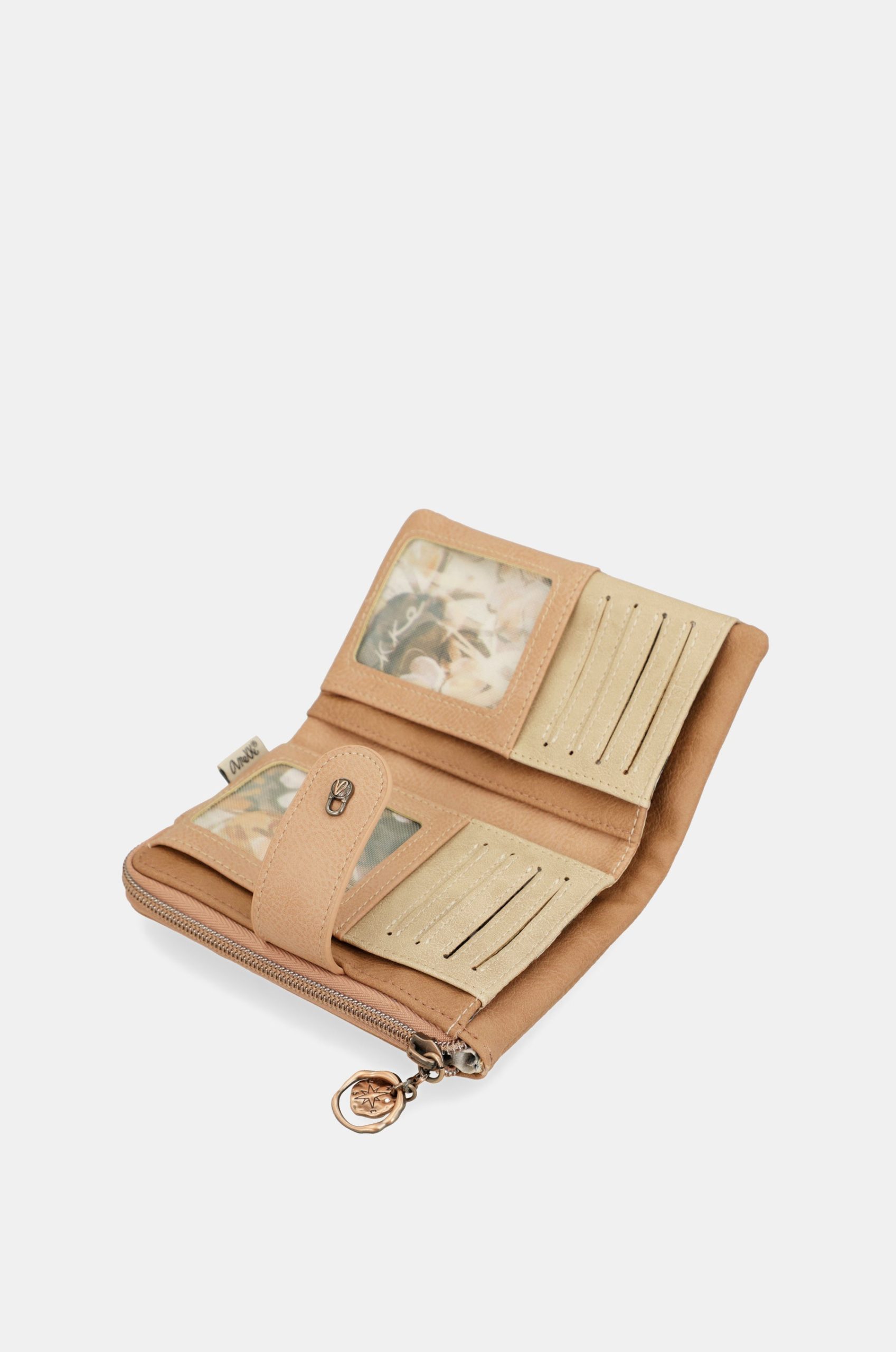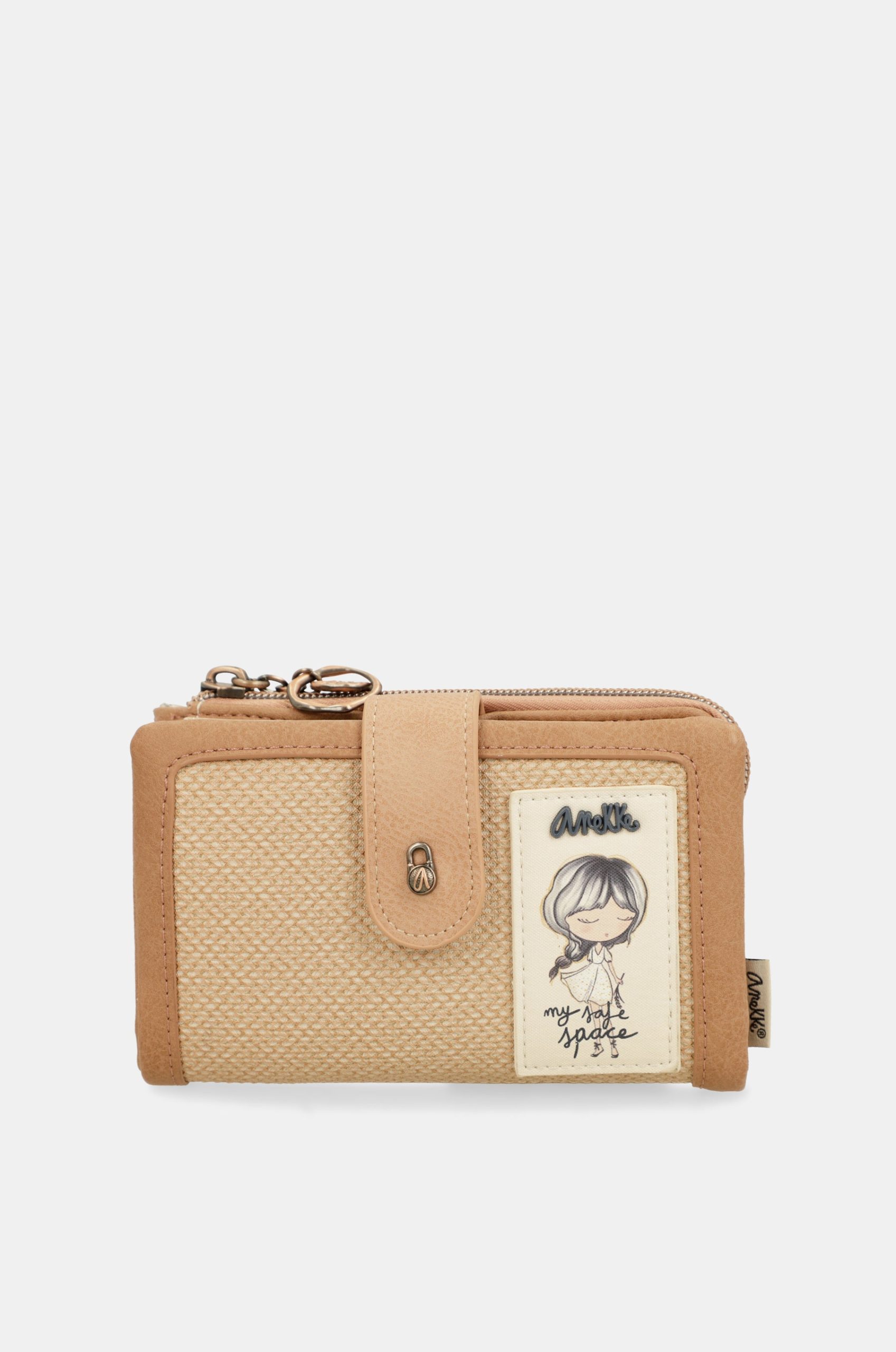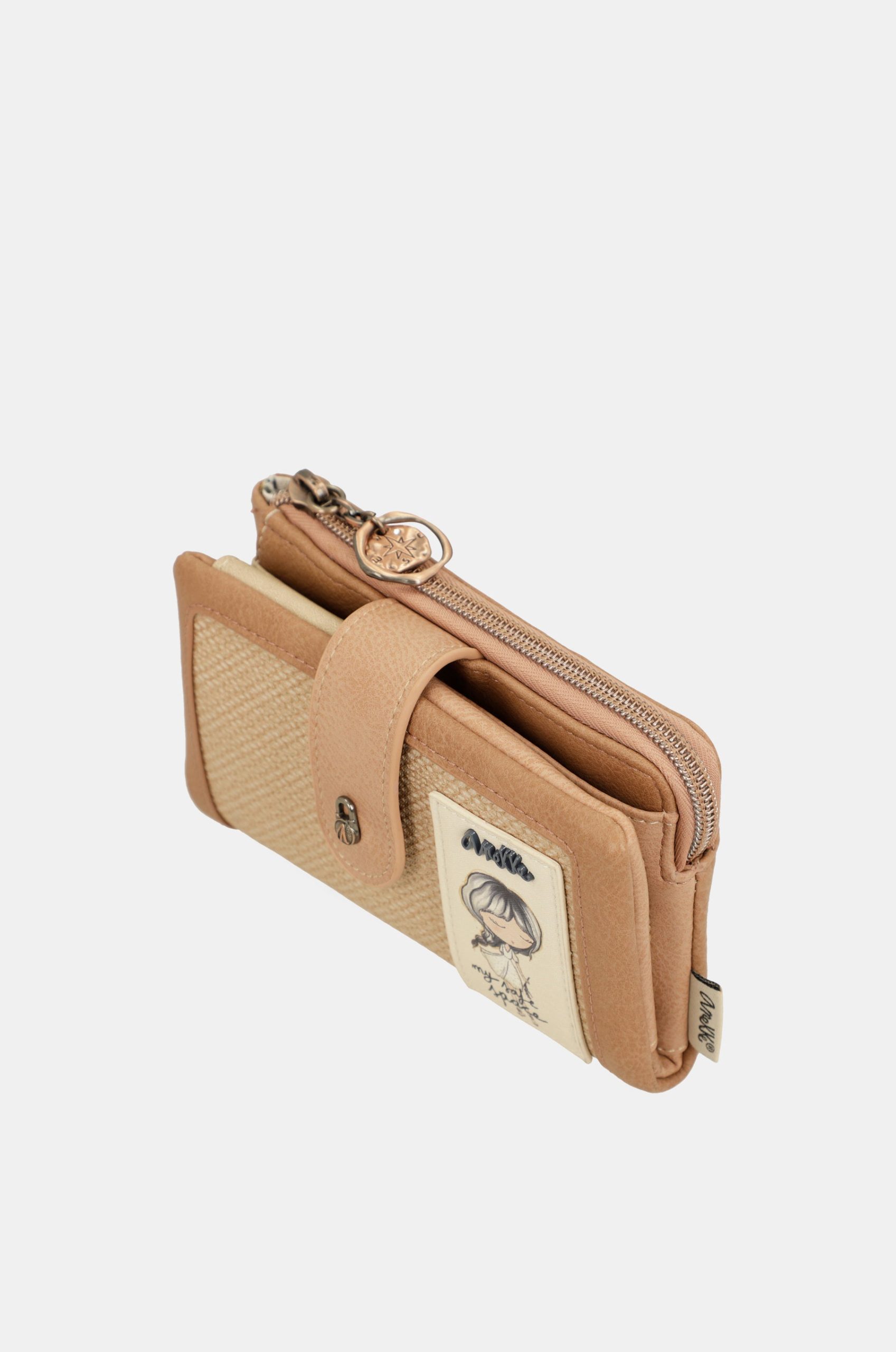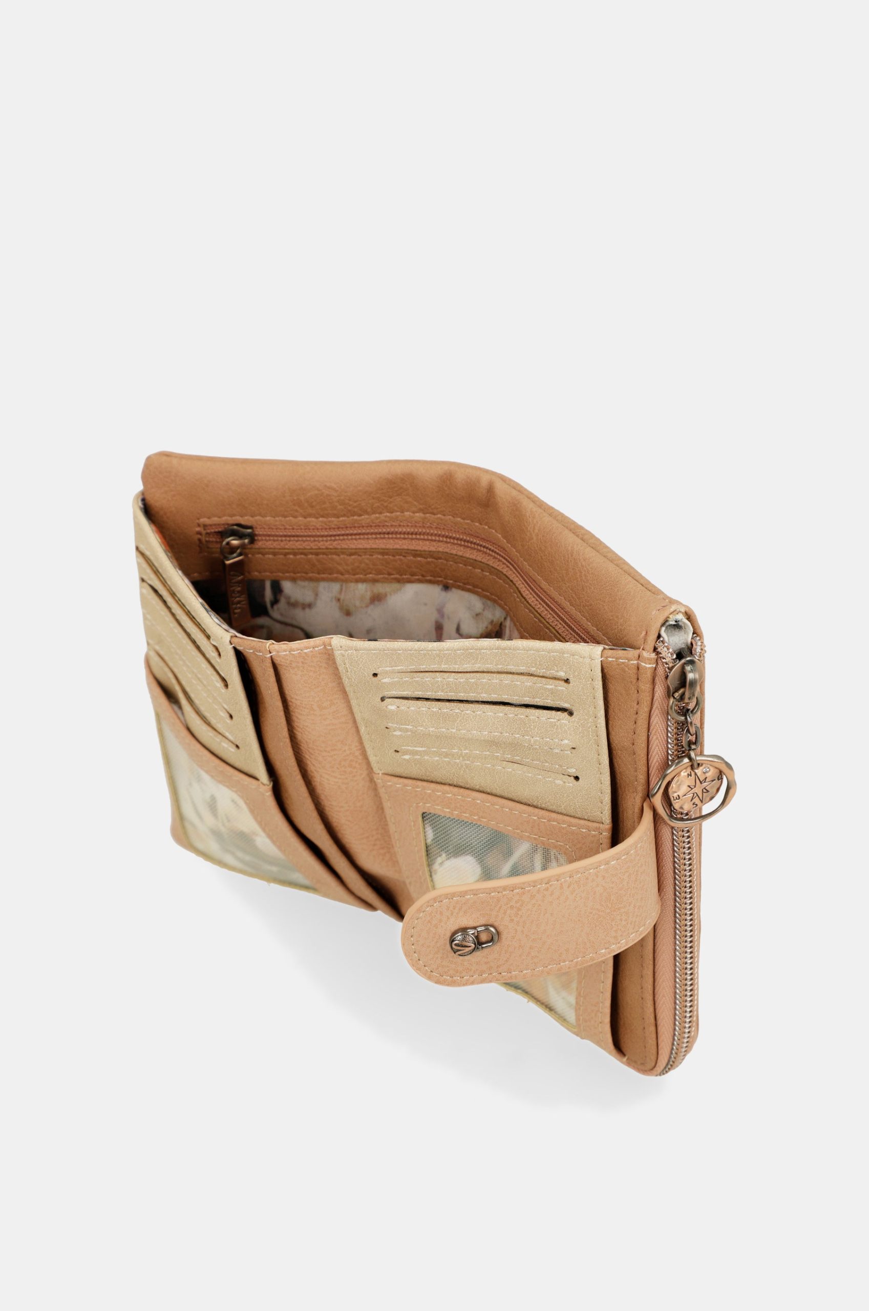 This product is part of the Stories line, inspired by a radiography of memory, those visual snapshots that build our recollections. The print and details of each product are inspired by nature and animals, with nods to the Jungle and Amazonia collections, while maintaining the warm and artisanal touches of Mediterranean. This medium-sized wallet is made of flexible material, has two main compartments: the back, where you will find a large billfold and space for banknotes and/or cards. It has a zip at the top, and inside you can keep coins. The entire interior is lined. Because memories inspire the future, get ready to enjoy them with Anekke!