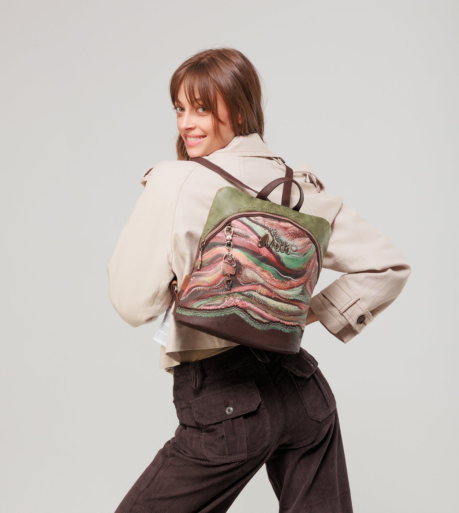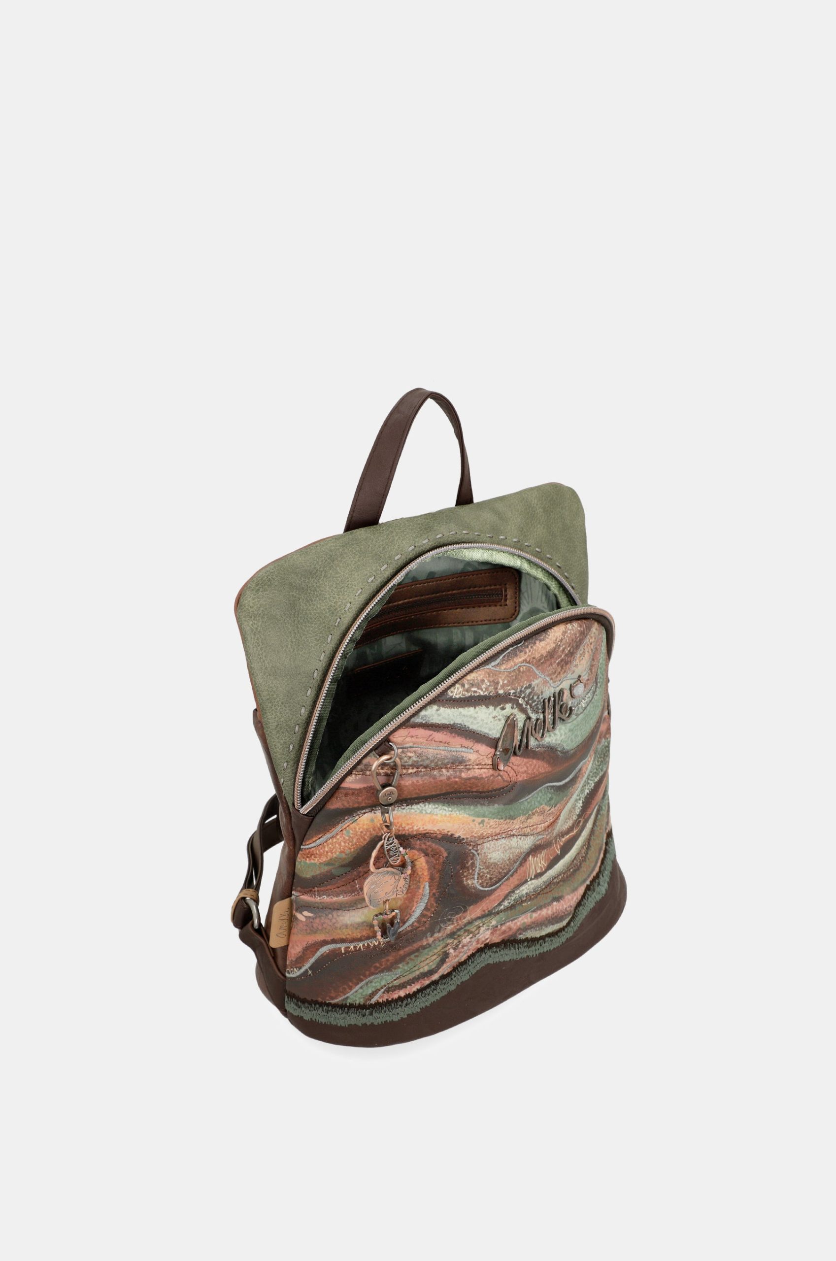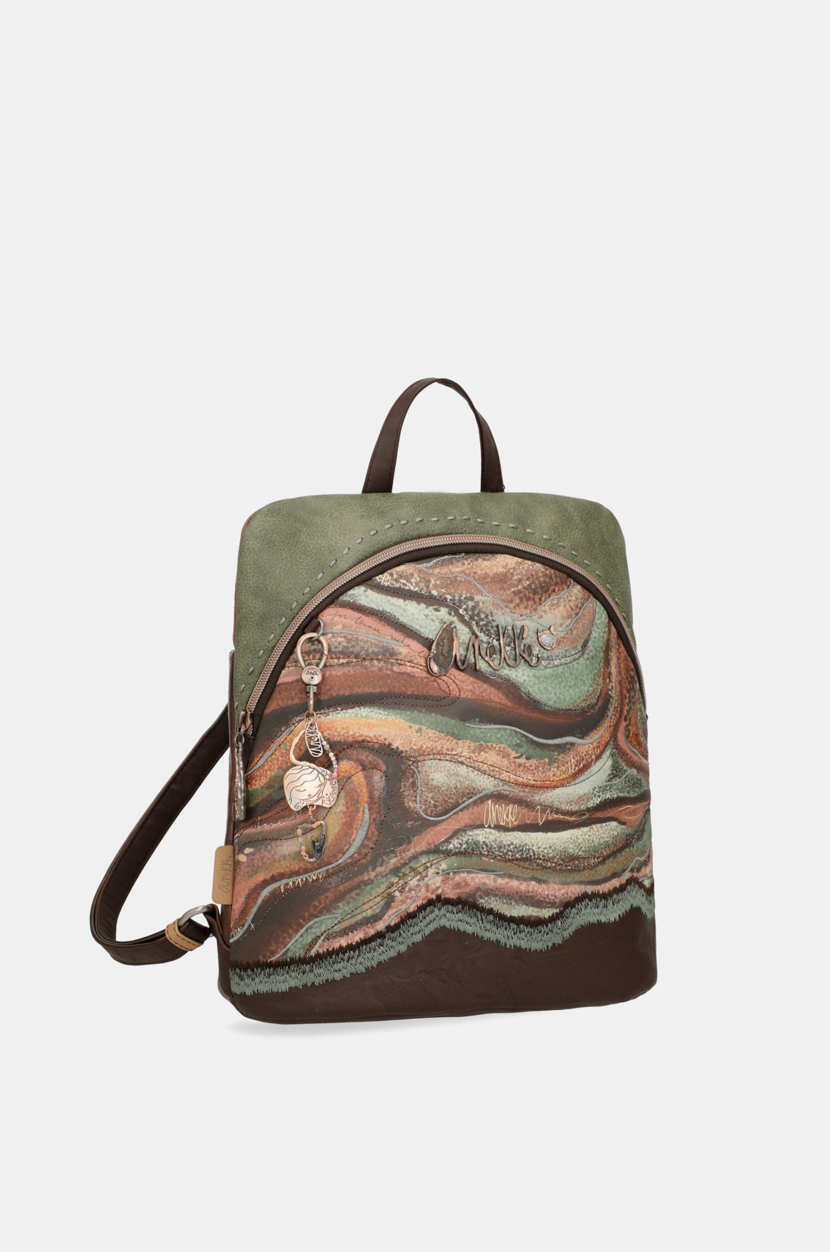 Ready for a journey to the Centre of the Earth with Anekke Core?Anekke Core is a tribute to the Danish seismologist Inge Lehmann, an important scientist who proved that the earth is composed of 4 layers and that its centre (Core) is liquid and solid. Each line in this collection is inspired by one of these layers. This product is part of the Outer line, which represents the second deepest layer of the Earth.This layer represents the strata of the earth, through various shapes, colours and textures. Brown, reddish and green tones are brought to life through different effects, such as quilting, embossing or embroidery, creating these shapes that will immerse you fully in the expedition.