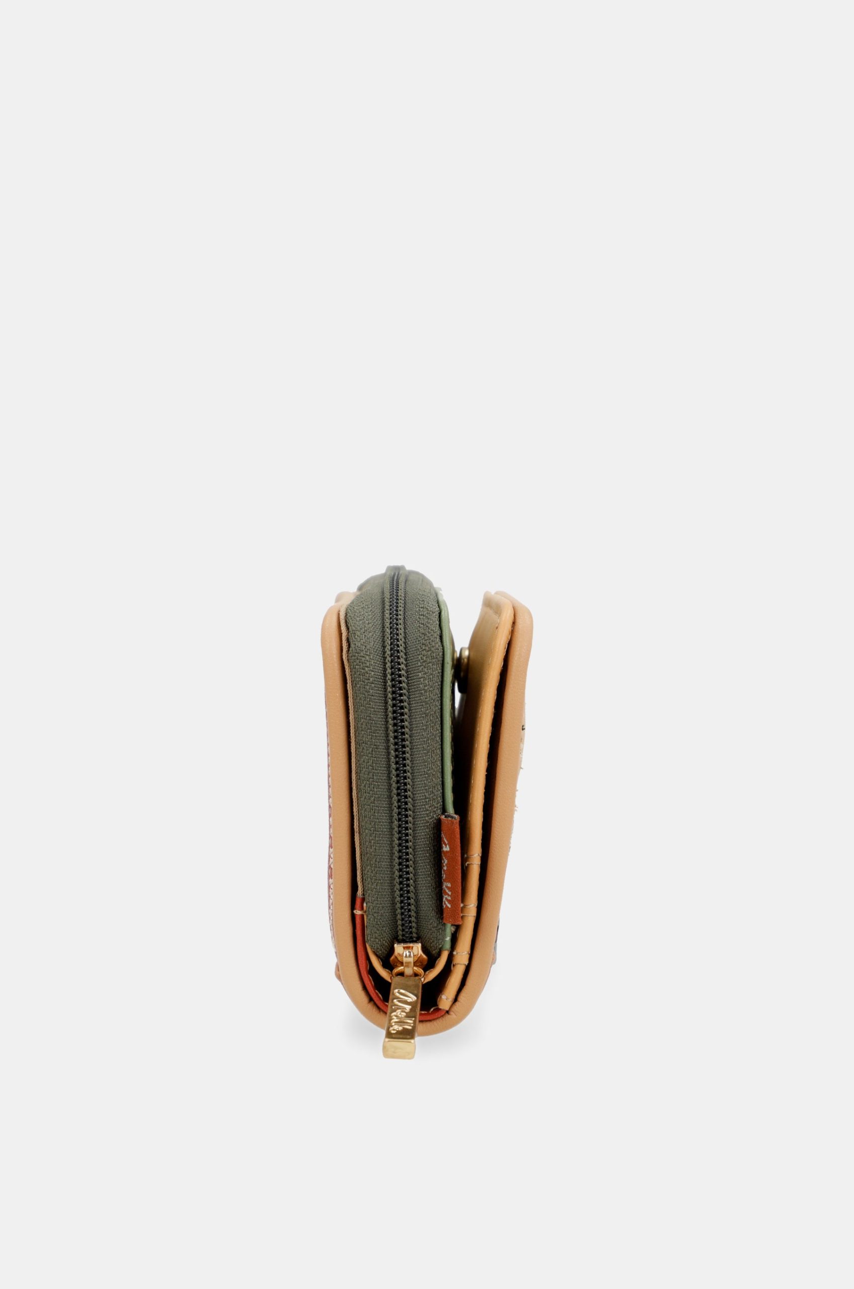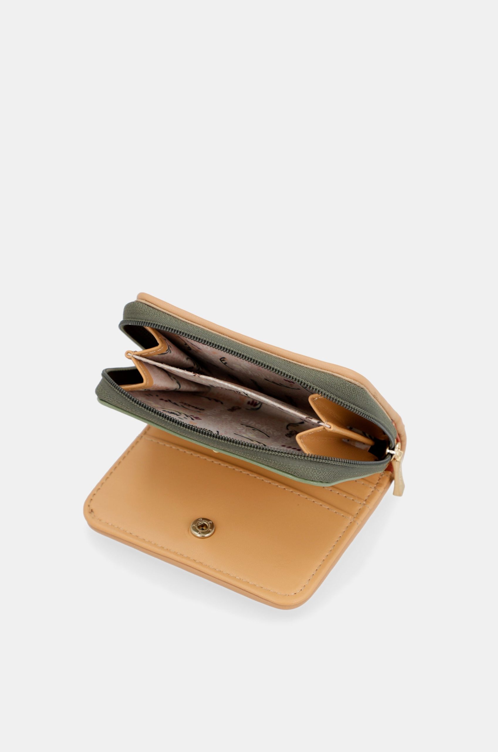 This small-sized wallet has two main compartments: the back, where you will find a large billfold and space for banknotes and/or cards. It has a zip at the top, and inside you can keep coins. The entire interior is lined.