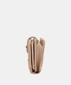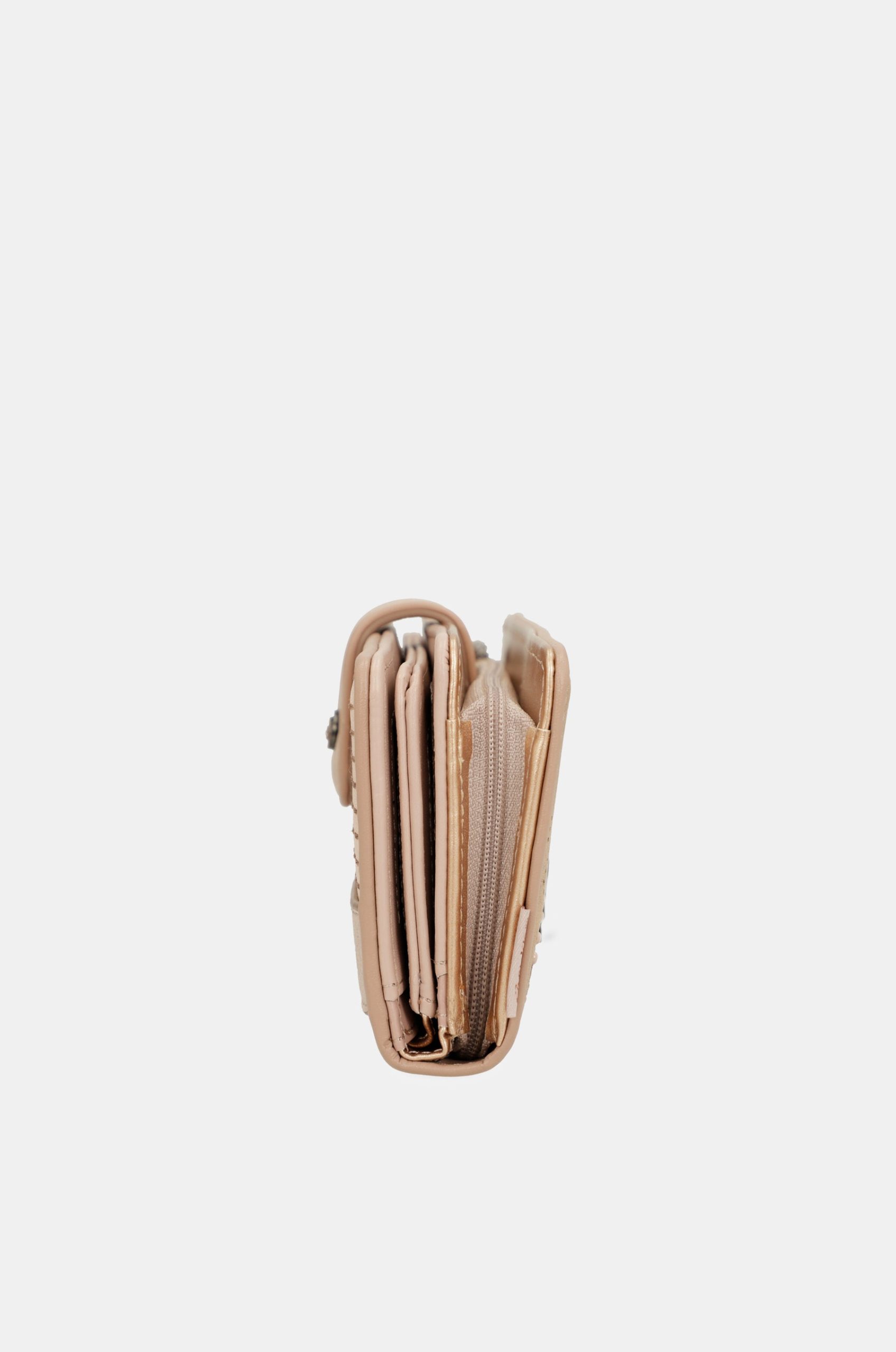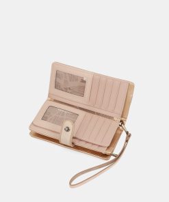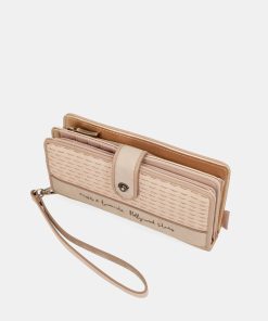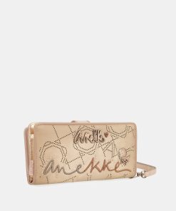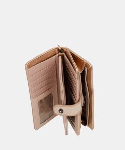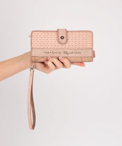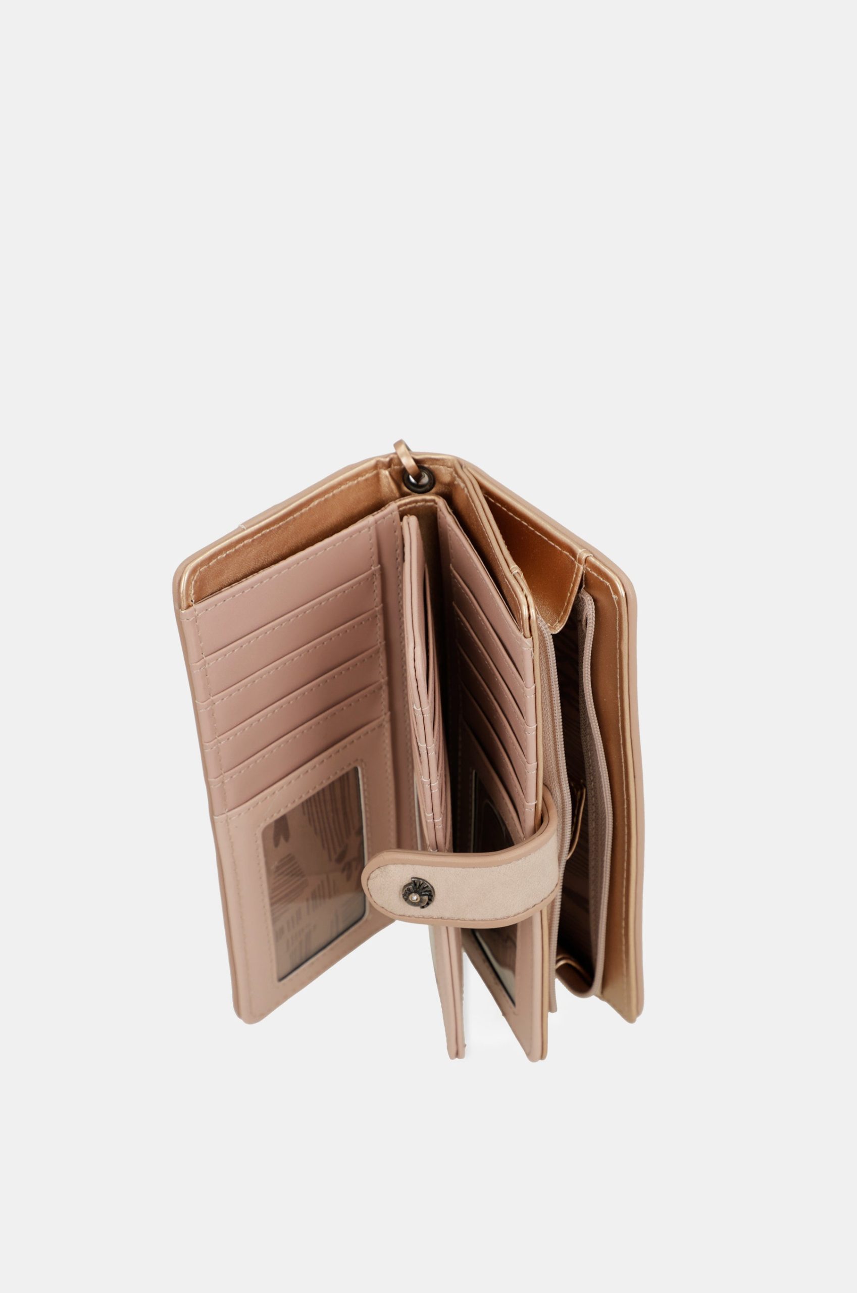 This large-sized wallet has two main compartments: the back, where there is a large billfold and space for banknotes, cards or documents, and the top with a zip closure to keep coins inside. The entire interior is lined. In addition, it has a hand handle for easy carrying.