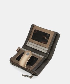 This medium-sized wallet is made of flexible material, has two main compartments: the back, where you will find a large billfold and space for banknotes and/or cards. It has a zip at the top, and inside you can keep coins. The entire interior is lined.