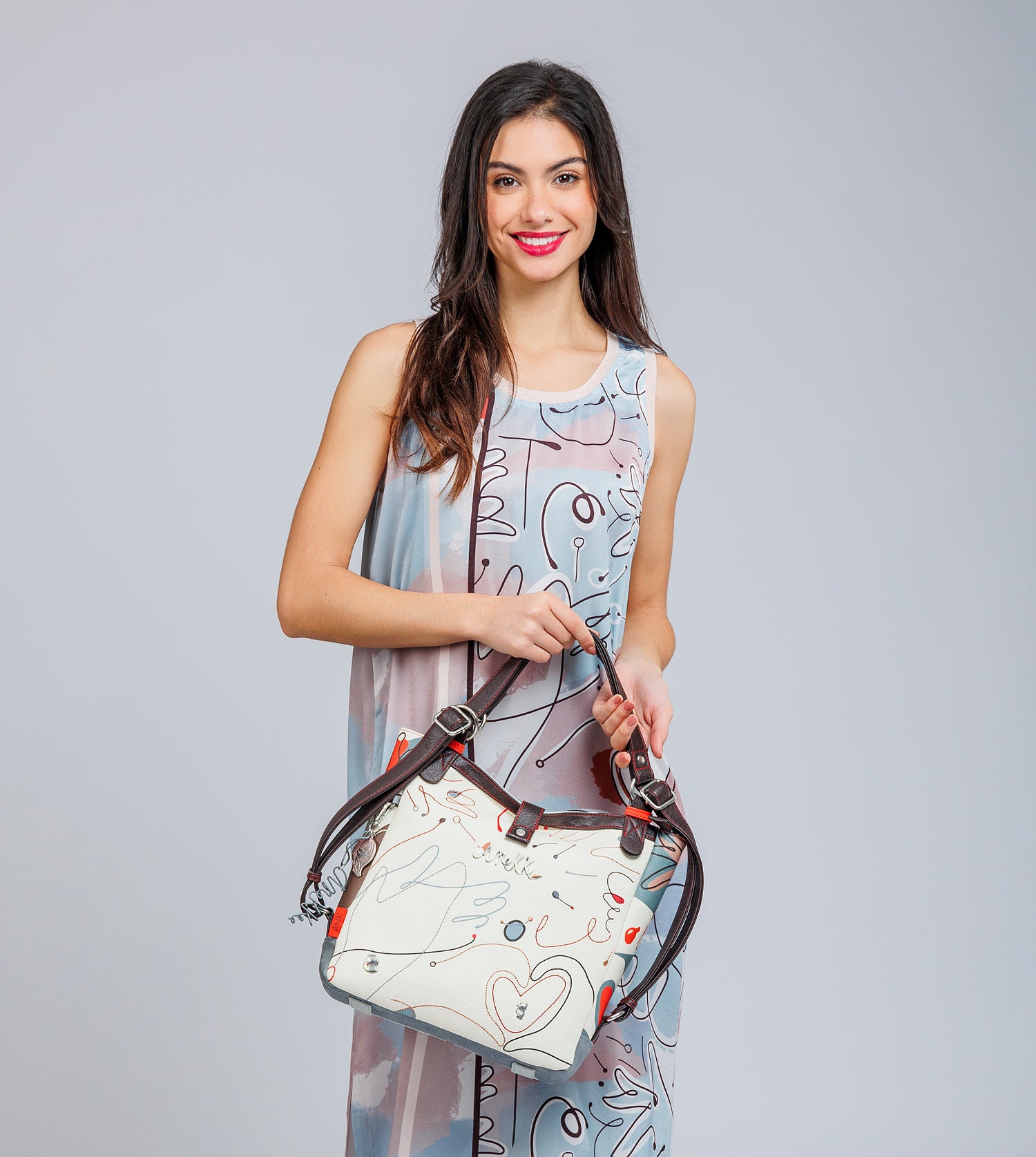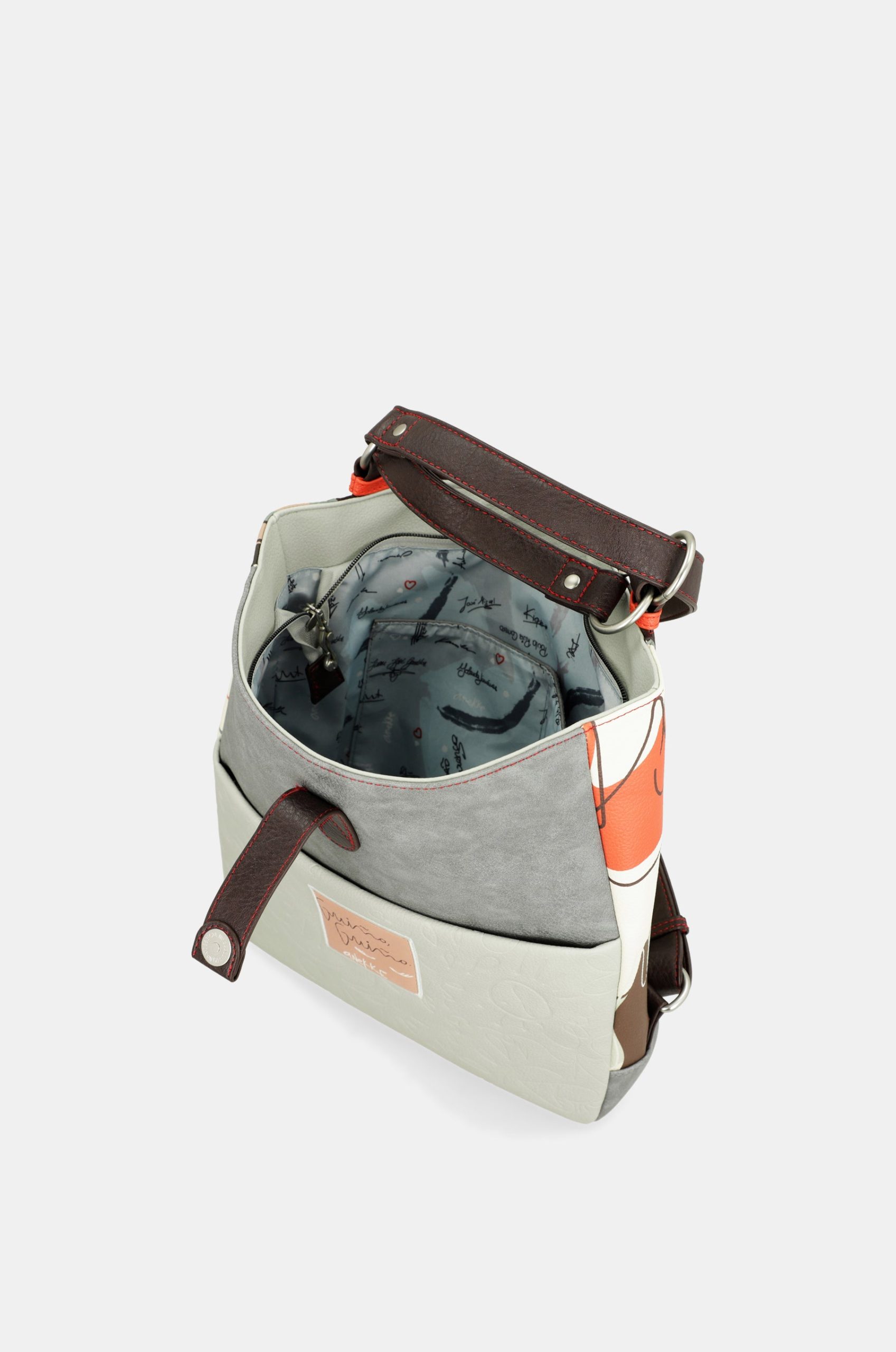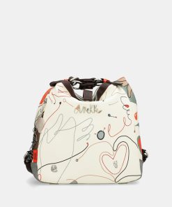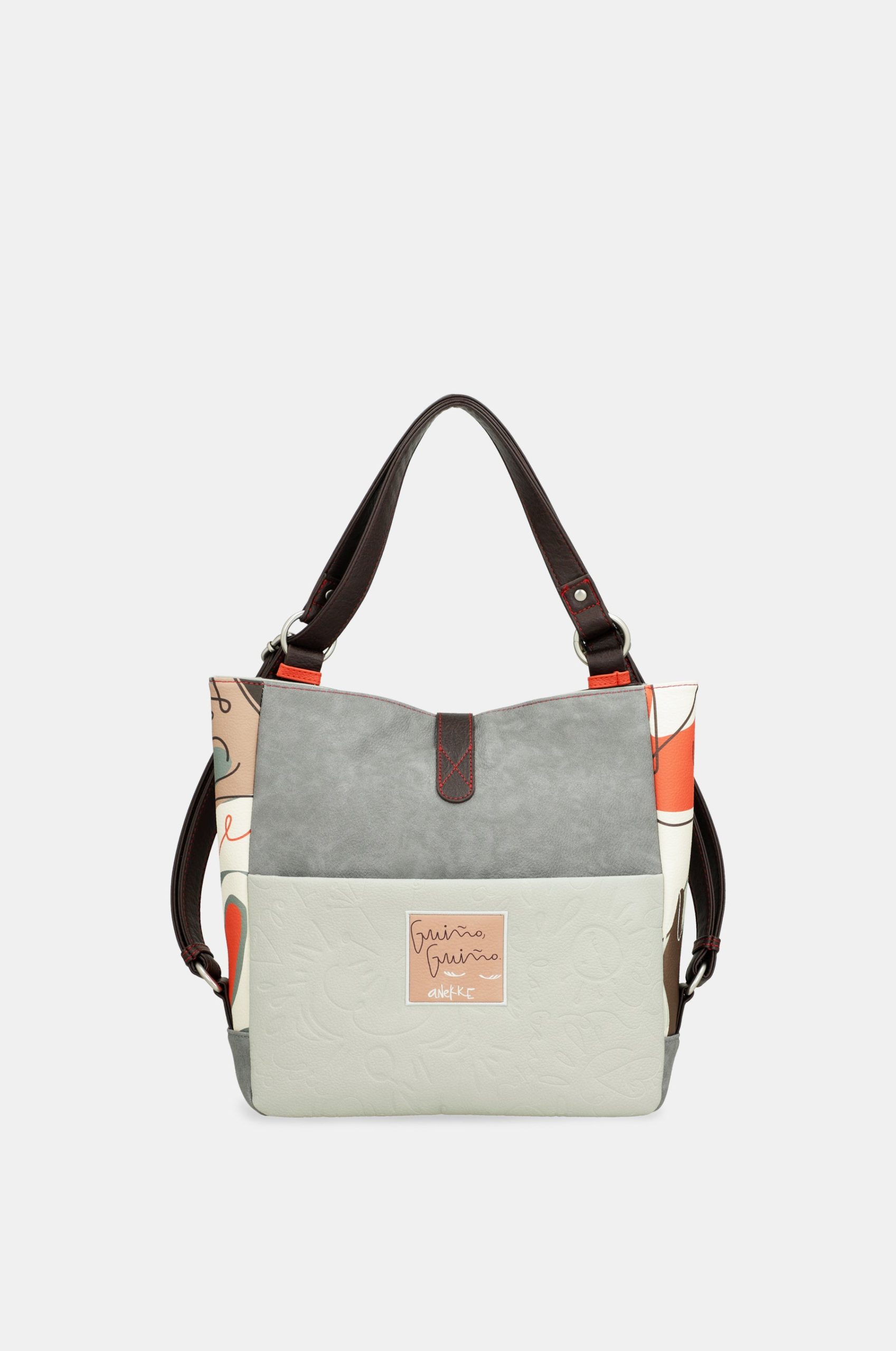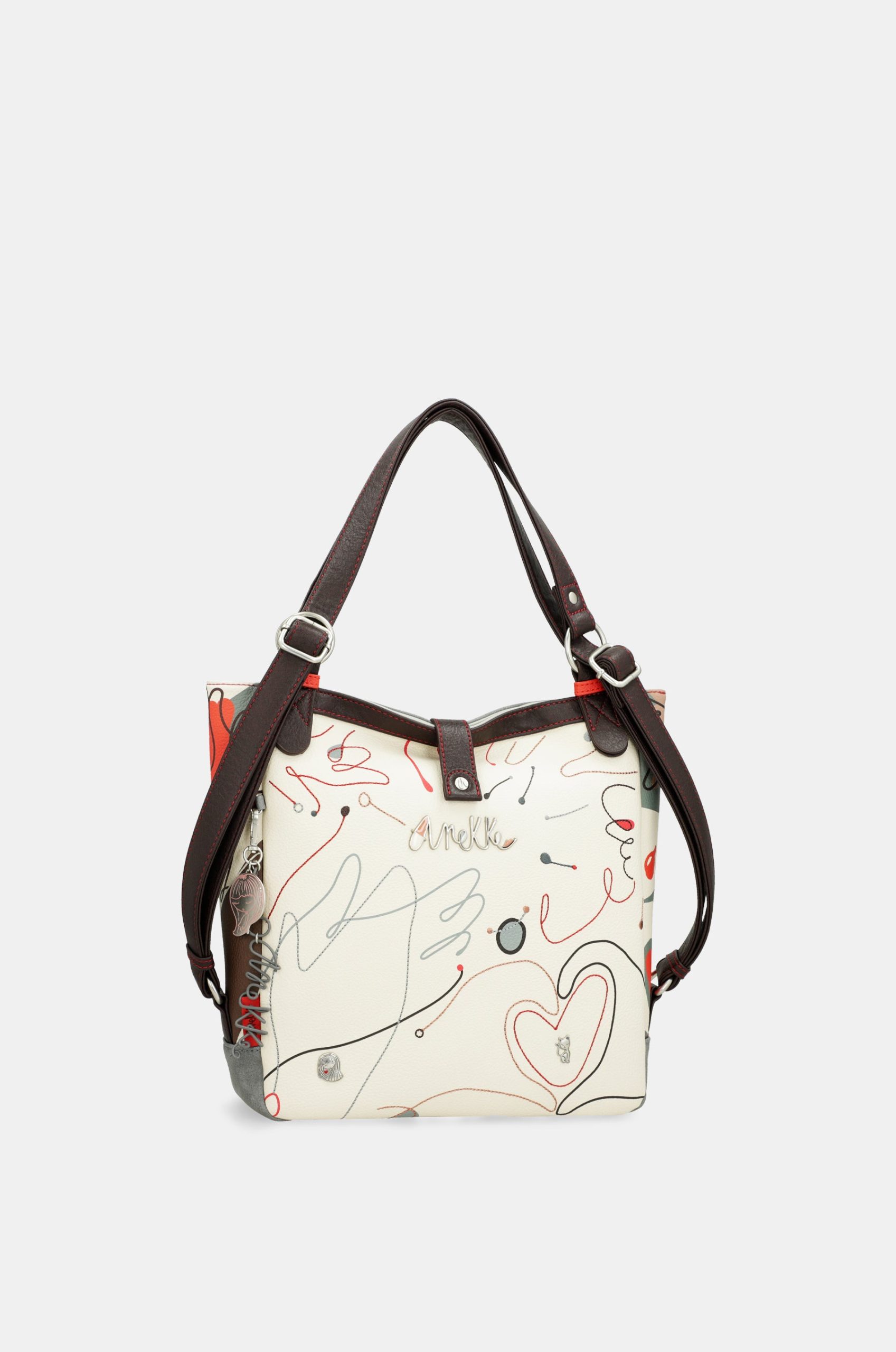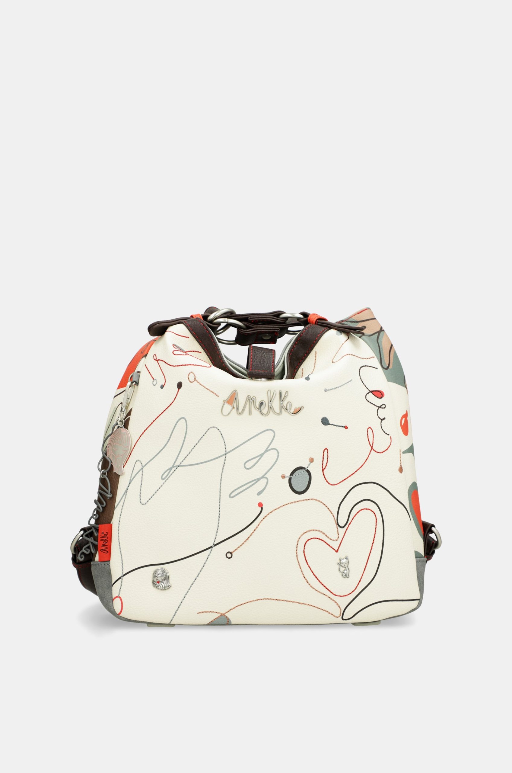This product is part of the Ole line. This capsule is inspired by the joy of the Spanish character, often expressed with exclamations like “olé,” which we use to say something is beautiful or well done. Hands are one of the main elements of the print, as we use them to express ourselves or to dance, with artistic touches inspired by Miró and music-inspired phrases. This shoulder bag convertible into a backpack is large-sized. It is a large capacity bag that adapts to you in every situation, with lined interior and pockets. The bag has a shoulder strap, which when stretched turns into a backpack, so you can use it in both positions ―it is up to you how you use it every day! Because nothing has more charm than the soul. And your new favorite from Anekke will remind you of that every day. Get yours now!