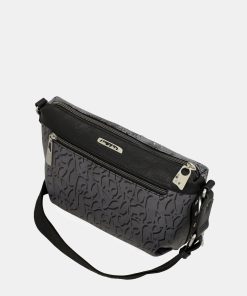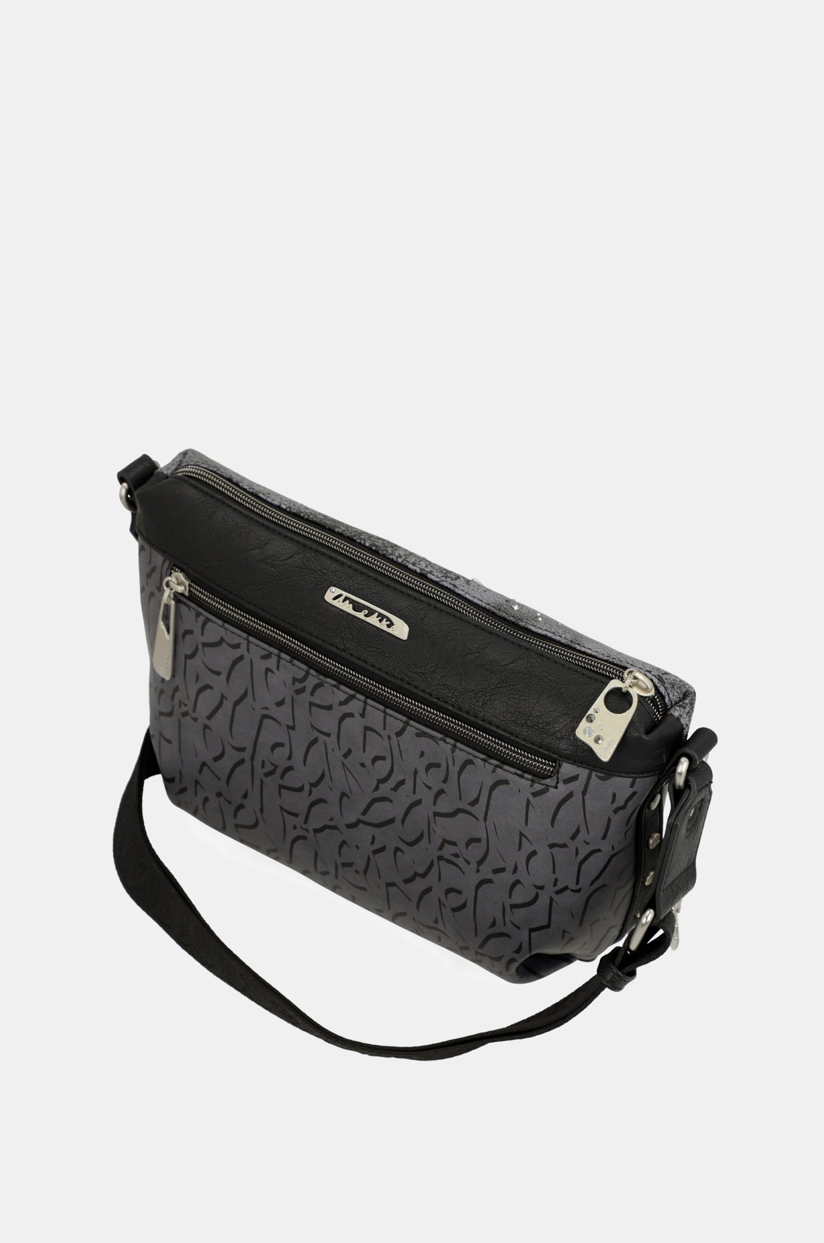 This rectangular-shaped crossbody bag features a zip closure, inner lining and pockets. It also has an outside pocket on the back. The shoulder strap is adjustable to different lengths.