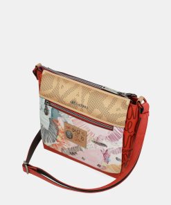 This crossbody bag with zip closure has 3 separate compartments inside, is medium-large sized and has a back pocket. The handle is a shoulder strap adjustable to different lengths, perfect for adapting it to your preferred height. The interior is lined and has pockets.