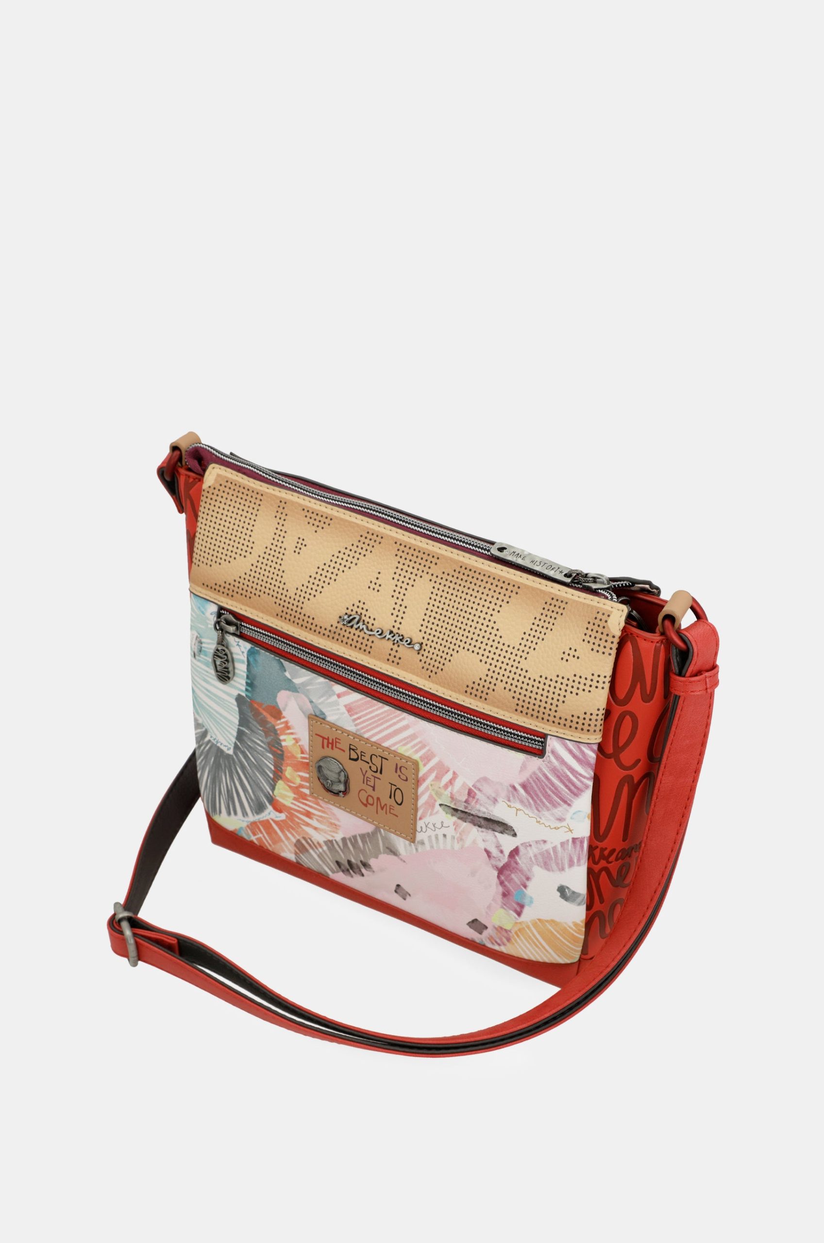 “Your best suit is your mind,” Hedy Lamarr. This legendary actress was a benchmark of classic cinema, not only thanks to her great career as an actress, but also for her other facet as a scientist. She was the inventor of wifi! Nothing feels better than following your dreams, just like Hedy Lamarr did, accompanied by a beautiful accessory inspired by the glamour of old Hollywood, just like this one from Anekke Hollywood’s Fashion line. With a vintage touch in its design, the colour block trend takes centre stage with a cheerful combination of red, yellow and purple, contrasted with the Anekke letters A N K in black.