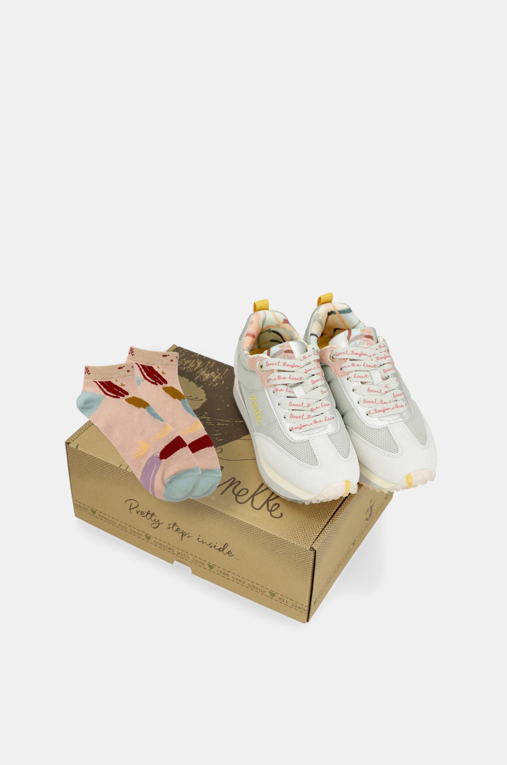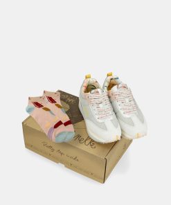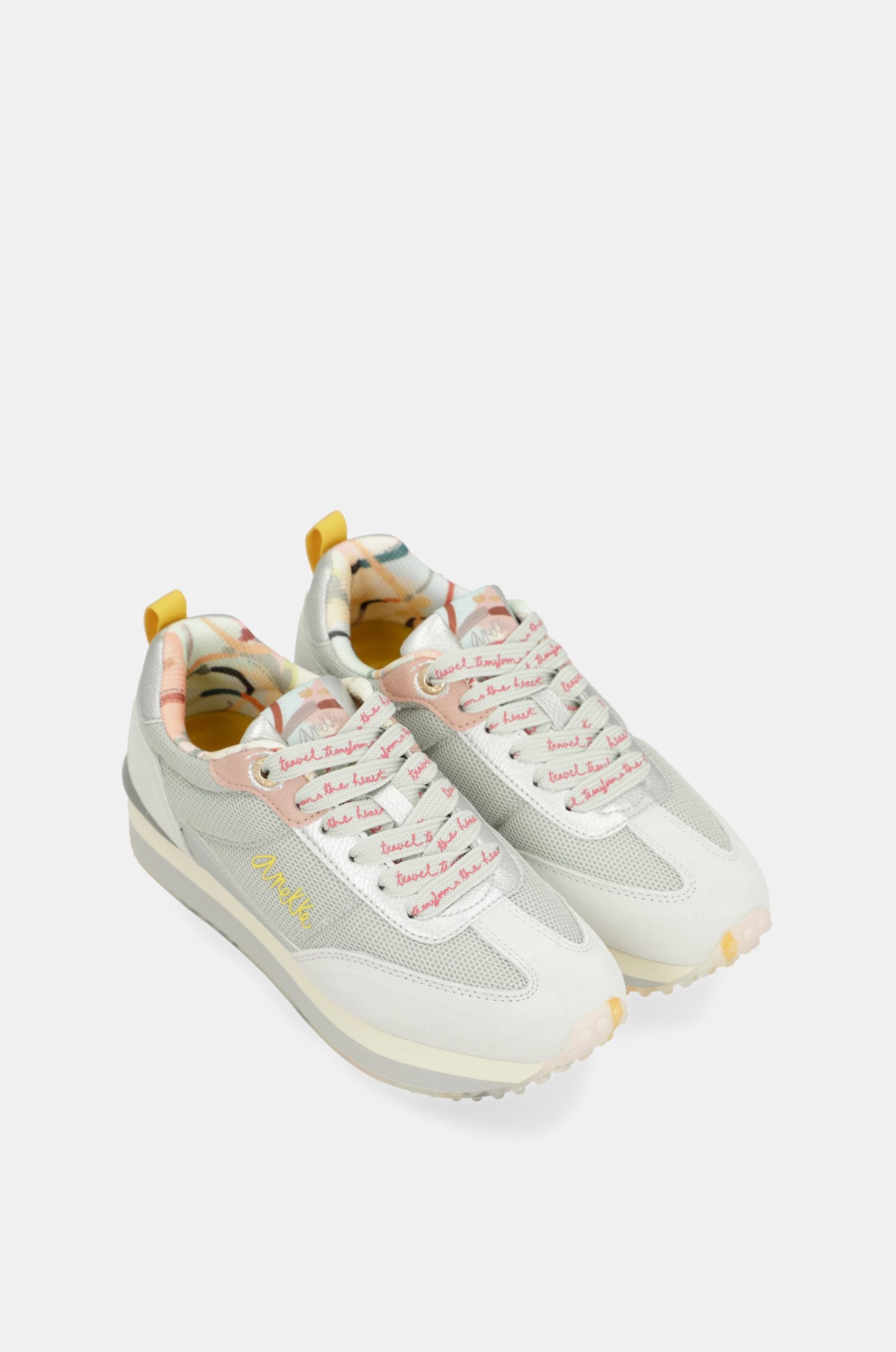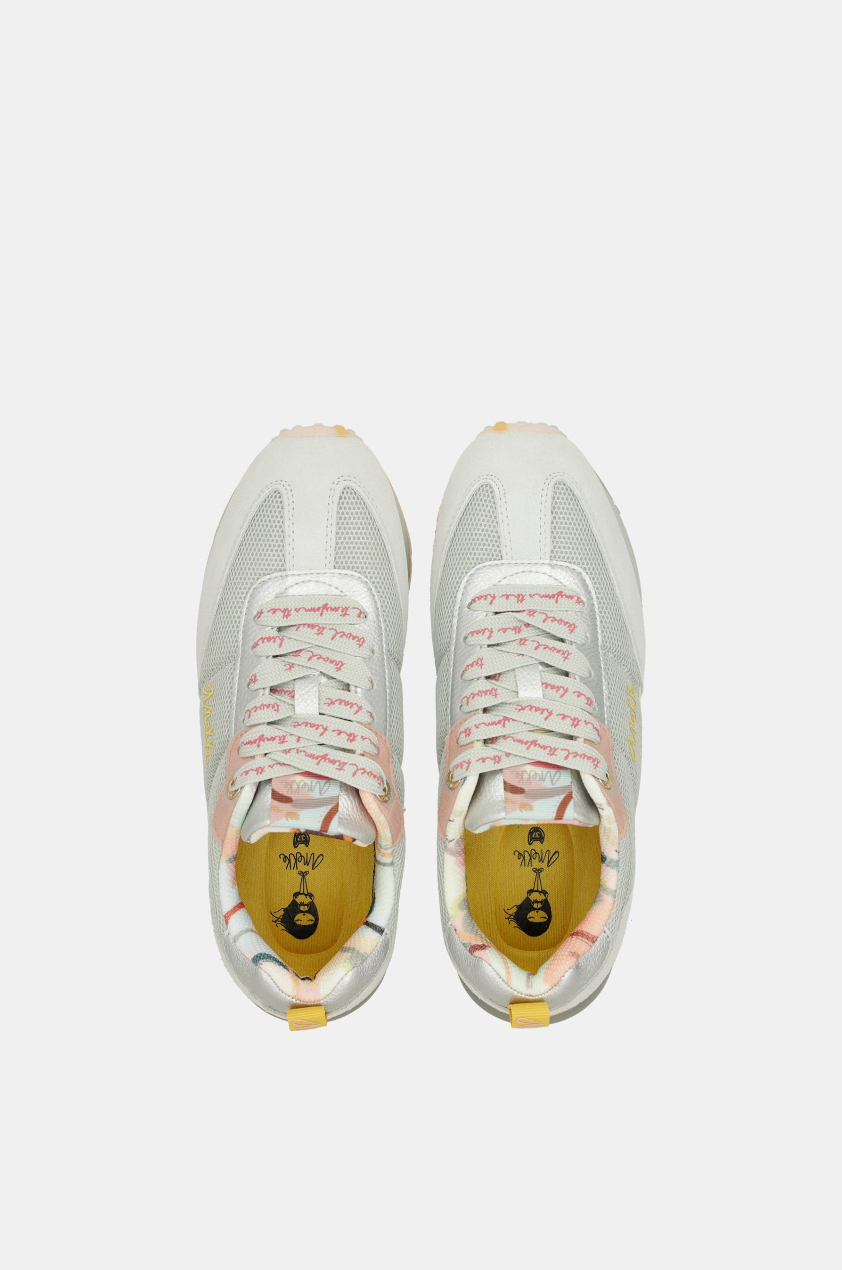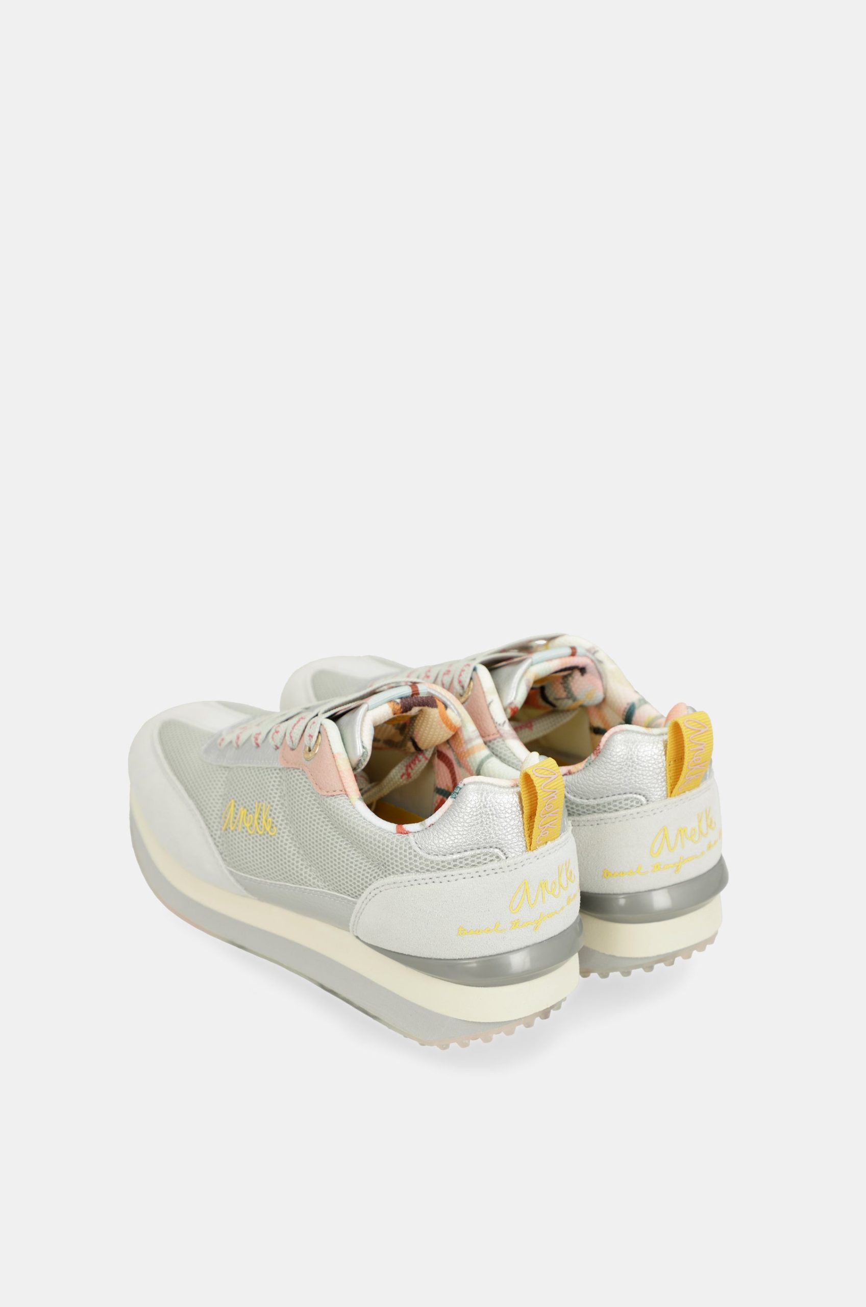 These sneakers are a perfect combination of style and comfort. Their design features a silver base with some printed details and countless surprises (from the laces to the tongues, they’ll keep surprising you!). These sneakers are part of the Anekke Smart collection.