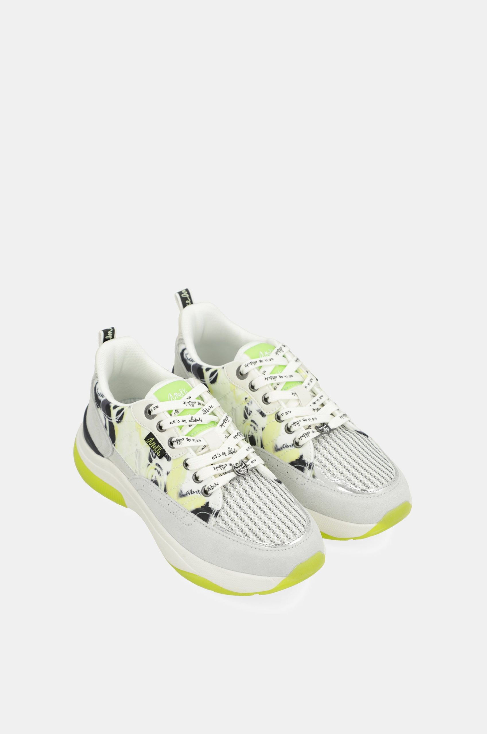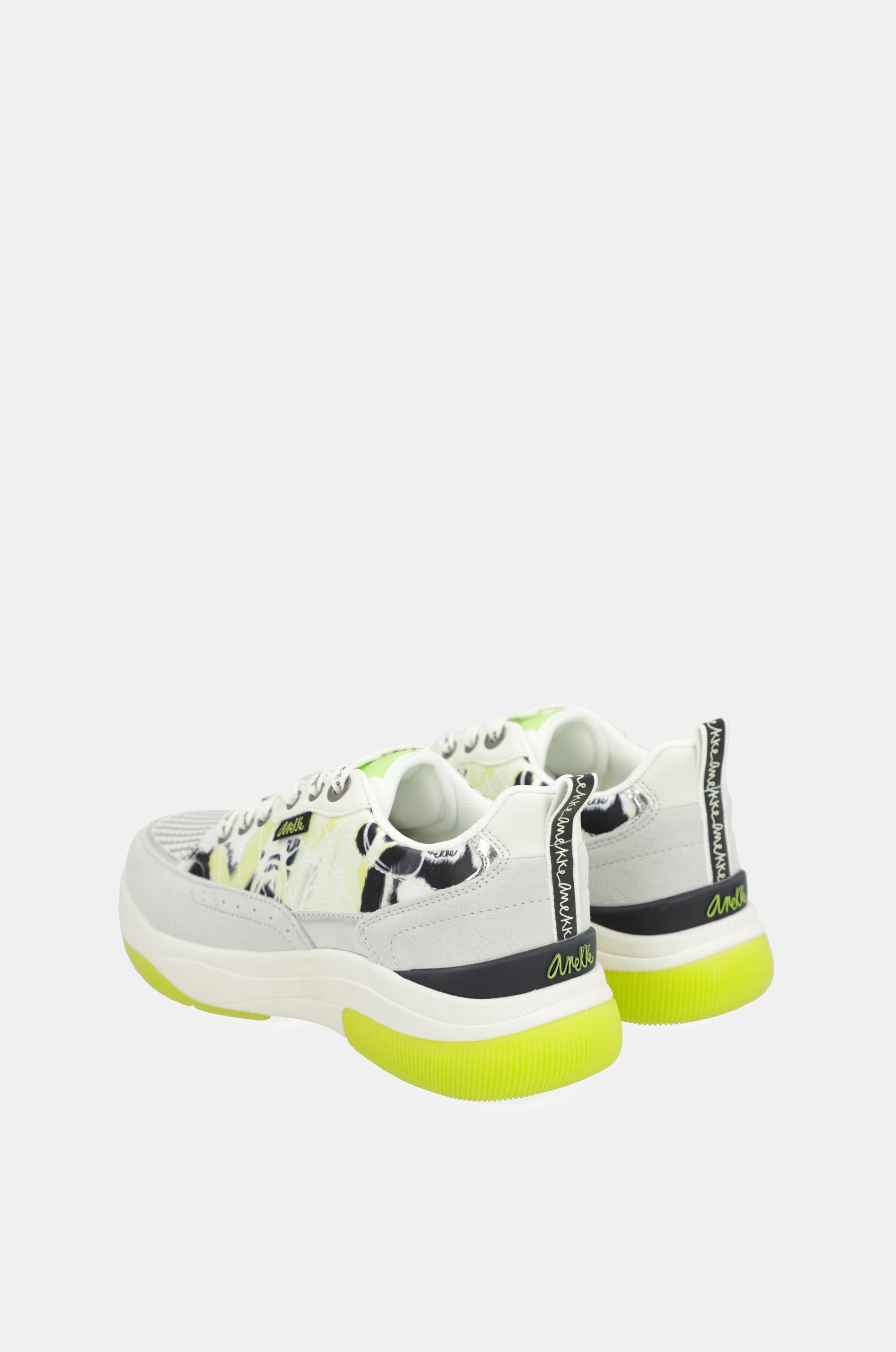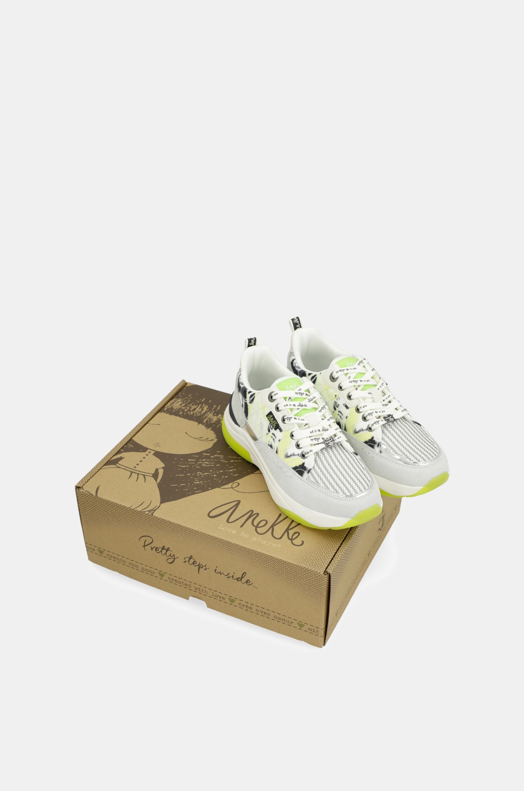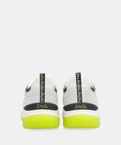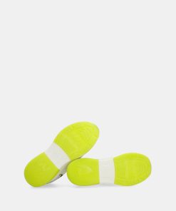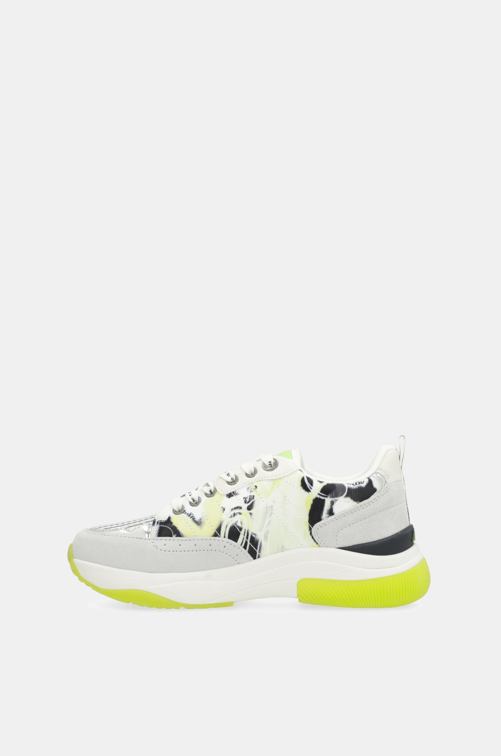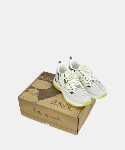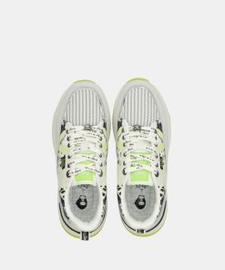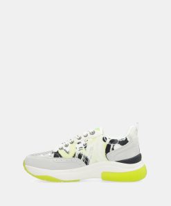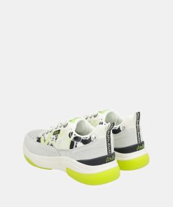 The base combines parts in white with yellow, gray, patterned, and black. The bicolor sole has an ergonomic shape that will ensure comfort with each of your steps. They feature laces and a comfortable removable insole, which cushions each stride.