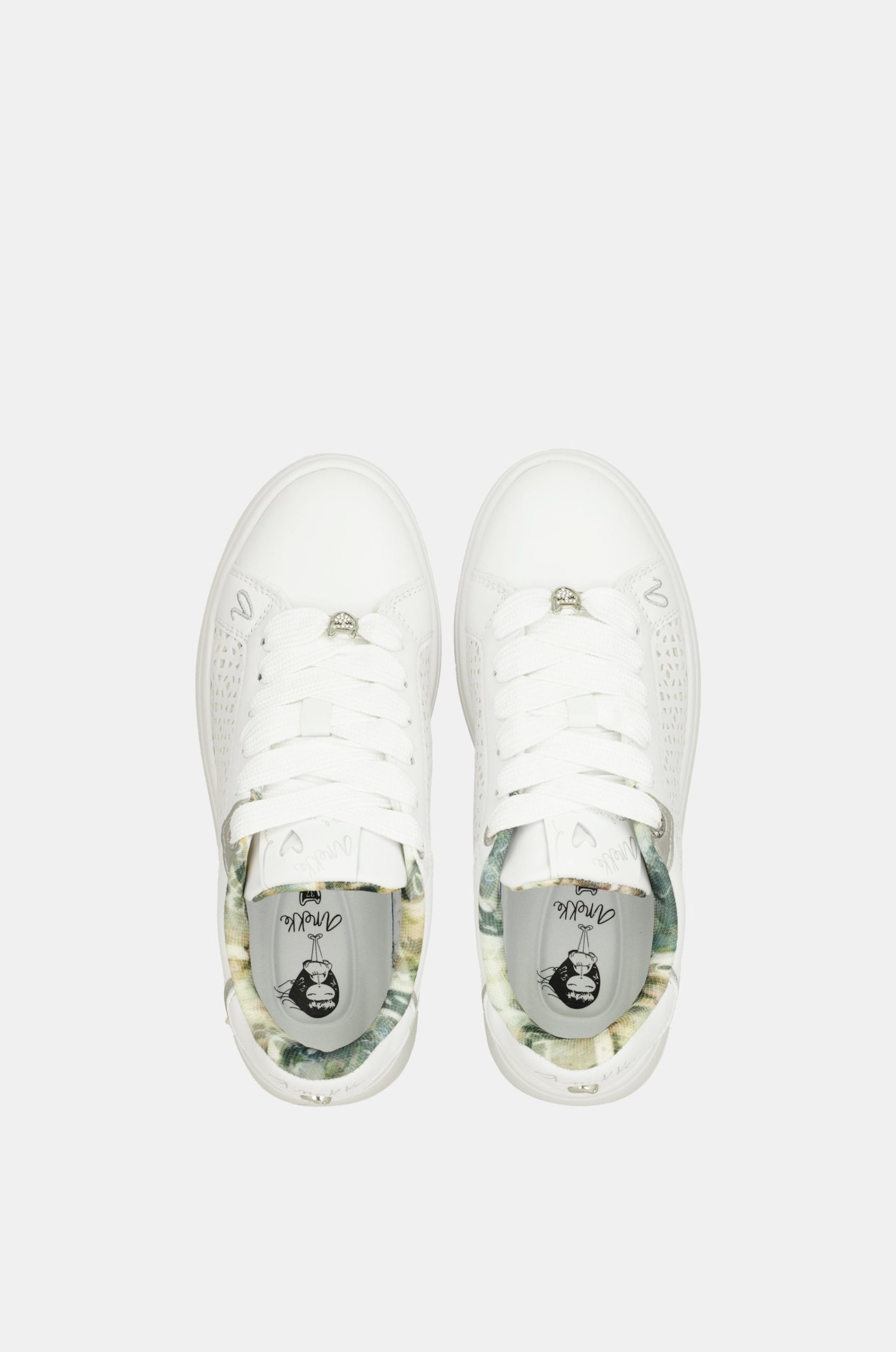 This original sneaker achieves a cushioned effect thanks to the decorative stitching, with a wide white sole and platform, ideal for perfectly cushioning each step. The interior features a print from the collection and has a removable padded insole, making them extremely comfortable. The white laces have decorative elements, making the design of these sneakers simply unique.