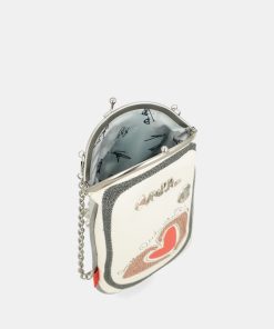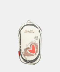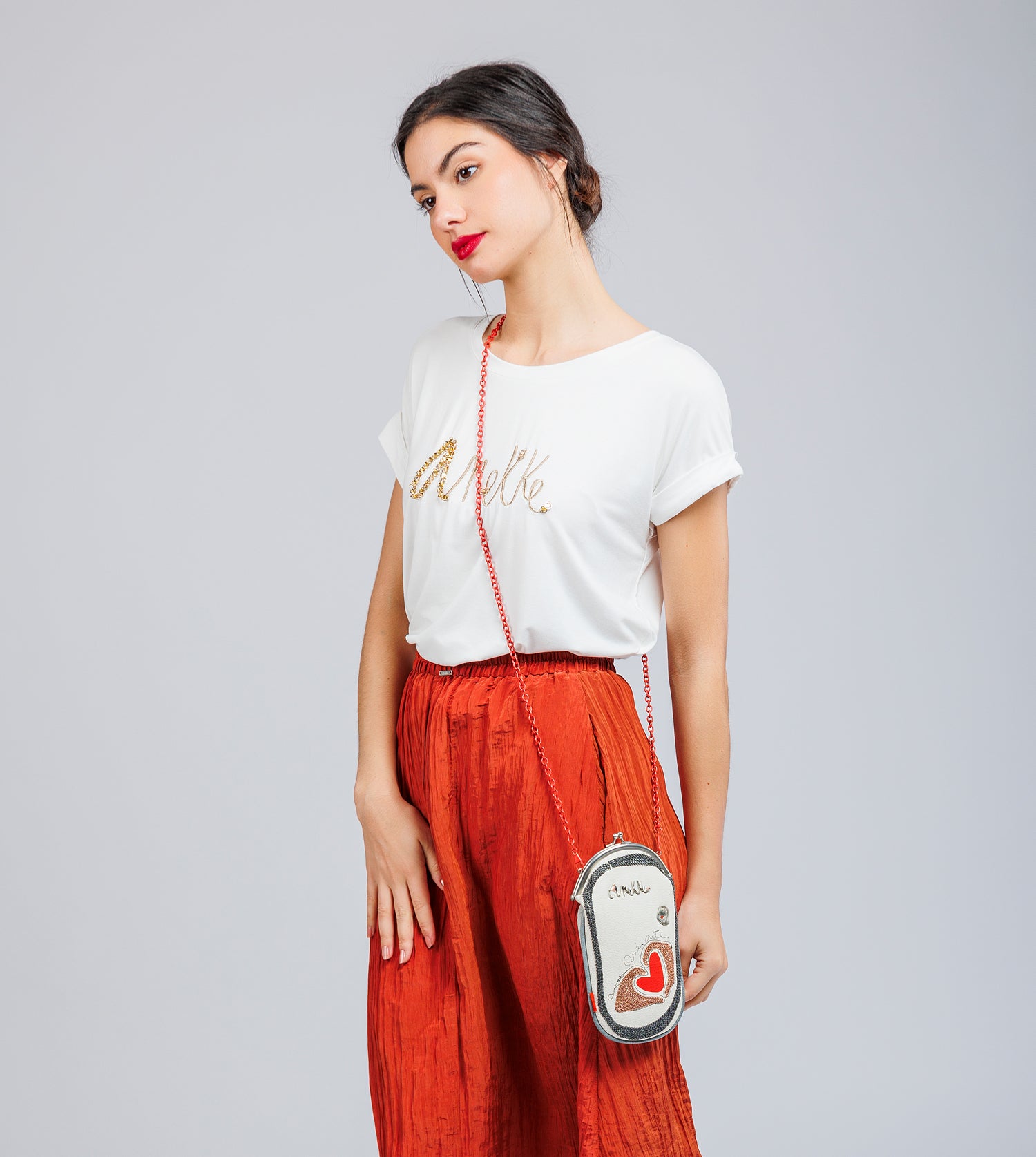 This product is part of the Ole line. This capsule is inspired by the joy of the Spanish character, often expressed with exclamations like “olé,” which we use to say something is beautiful or well done. Hands are one of the main elements of the print, as we use them to express ourselves or to dance, with artistic touches inspired by Miró and music-inspired phrases. This original glasses case can be used both to store your glasses and as a crossbody bag to carry your mobile phone. It has an original vintage touch, thanks to its kiss-clasp closure and metal chain handle, and its interior is lined. Because nothing has more charm than the soul. And your new favorite from Anekke will remind you of that every day. Get yours now!