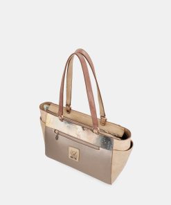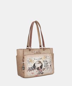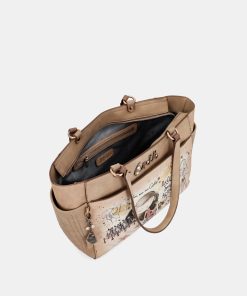 This large-sized shoulder bag features a zip closure, inner lining and pockets. It is perfect for carrying everything you need with you, thanks to its large capacity. It has two shoulder handles for hanging it up. It also has pockets on the front and back, and on both sides.