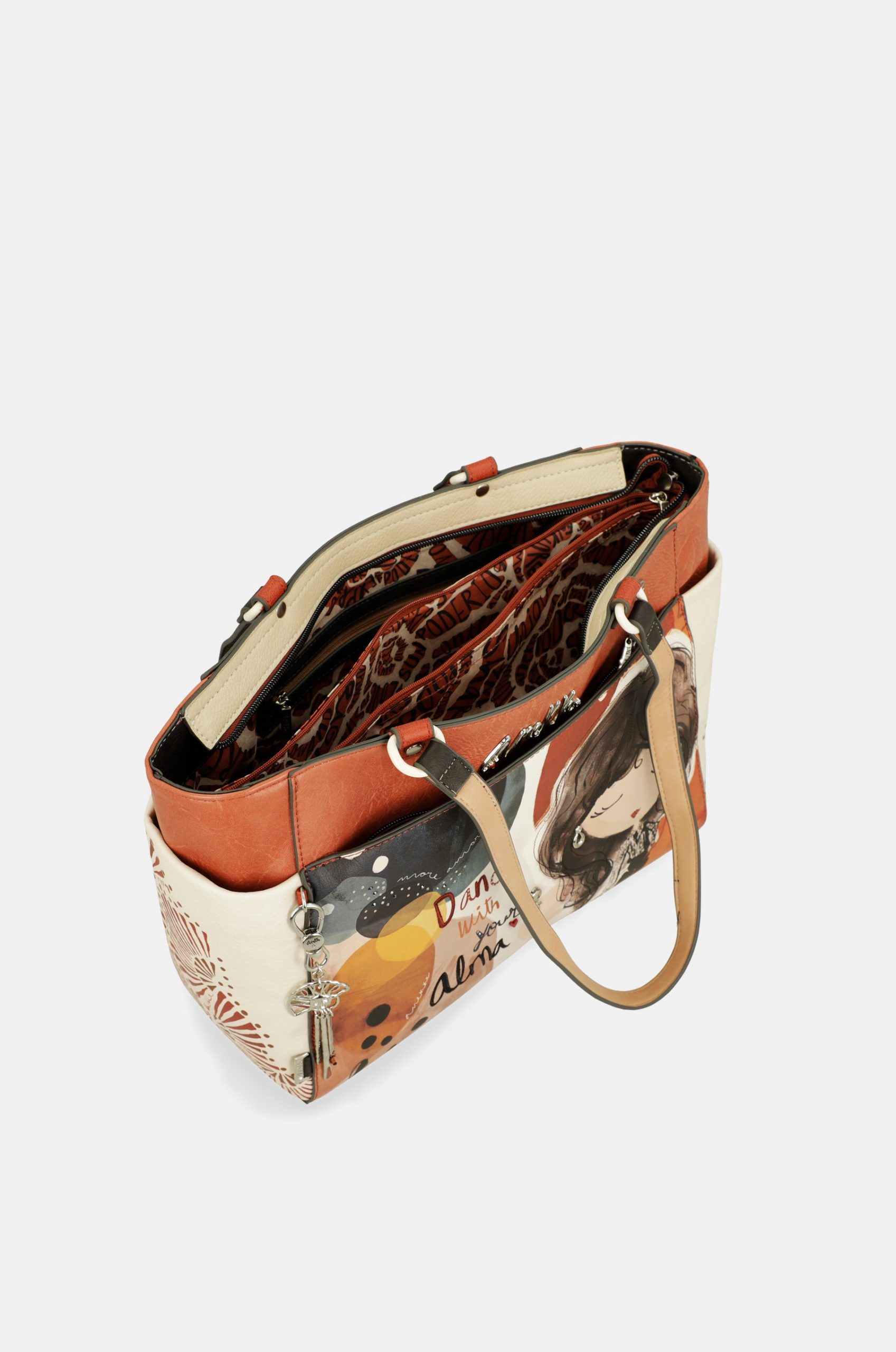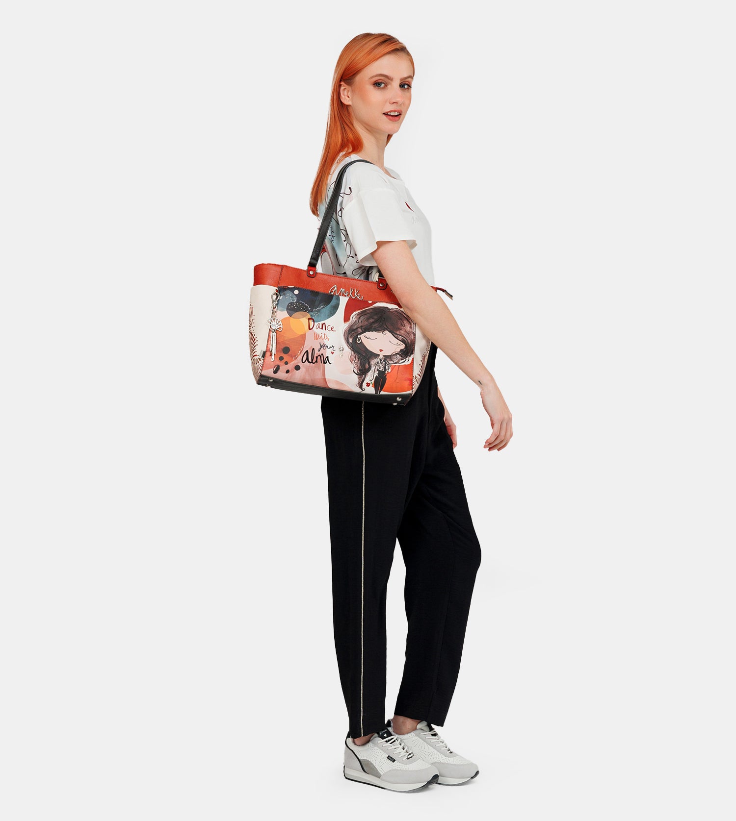 Anekke Alma is a collection inspired by a journey through Anekke’s homeland: Spain. Every small detail is inspired by the roots, culture, and richness of Spain. Reinterpreted polka dots and fans, cheerful colors, and countless nods to our traditions will be your ticket to a journey like no other: with soul. This large-sized shoulder bag features a zip closure, inner lining and pockets. It is perfect for carrying everything you need with you, thanks to its large capacity. It has two shoulder handles for hanging it up. It also has pockets on the front and back, and on both sides. It is, without a doubt, a tribute to the country that saw Anekke grow up. Because there are journeys made with the soul, and this one begins in the country Anekke calls home. Ready to dance with soul? Get your new favorite now!