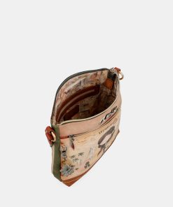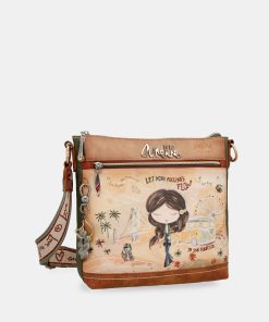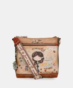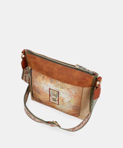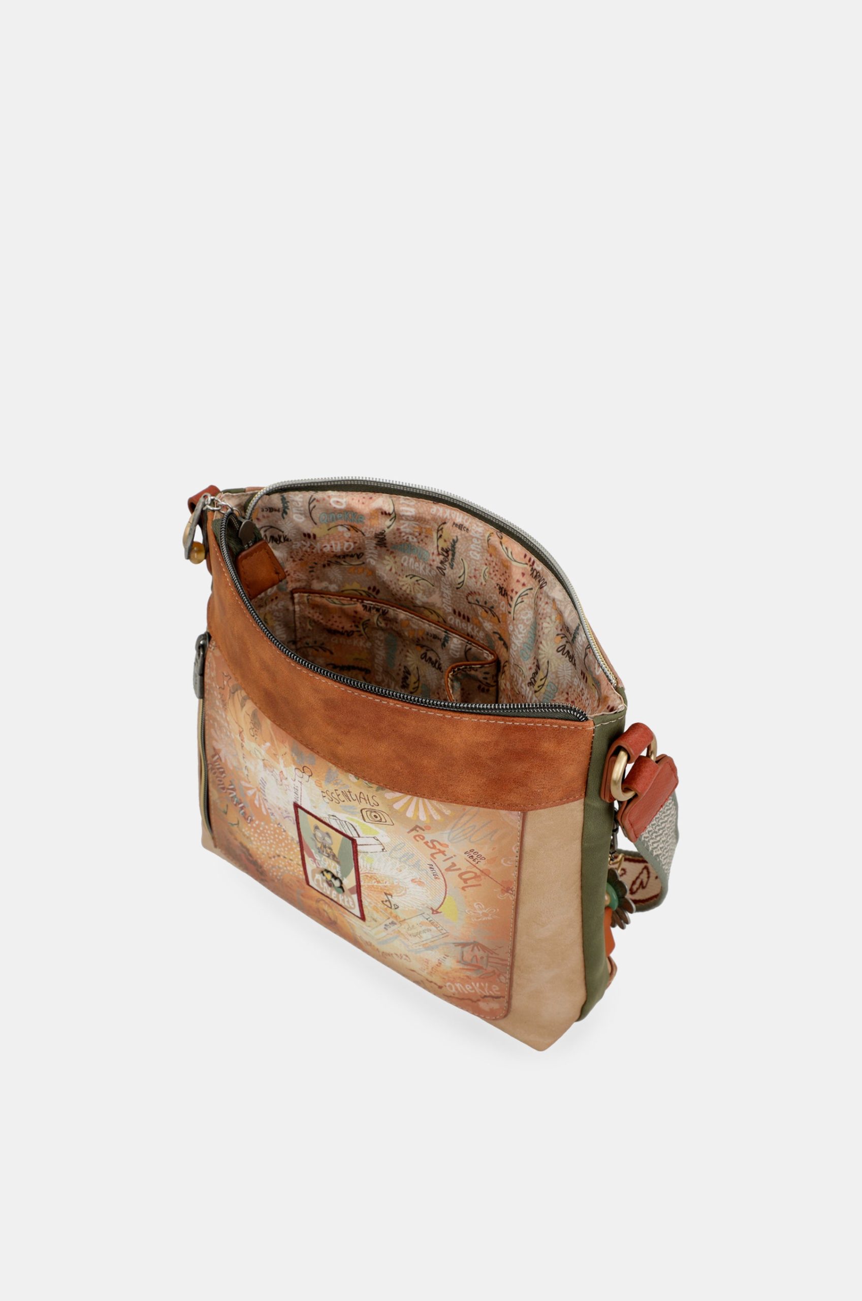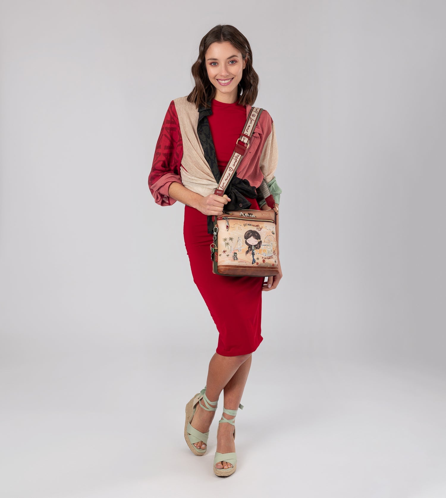 This is a medium-sized crossbody bag with pockets on the front and back. It has a zip closure and a lined interior with pockets. The handle is a shoulder strap adjustable to different lengths, perfect for adapting it to your preferred height.