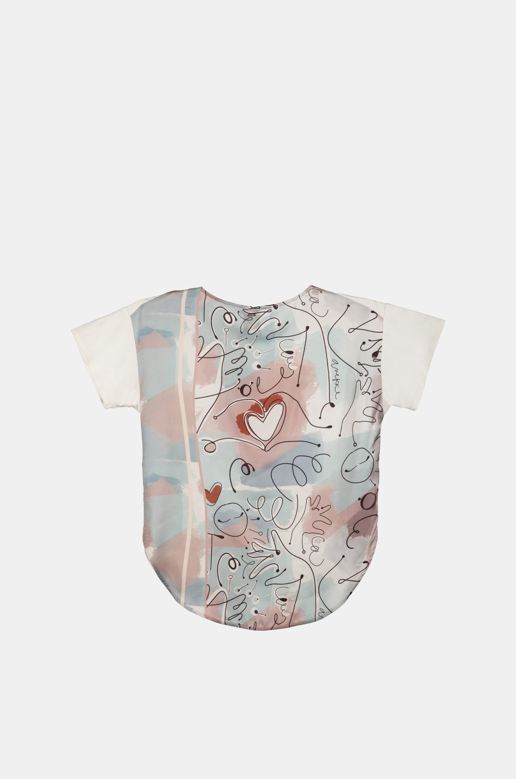 This beige t-shirt with a print from the Anekke Alma collection on the back is perfect for elevating any of your looks. It features a round neckline, details, and phrases from the collection on both the front and the back.