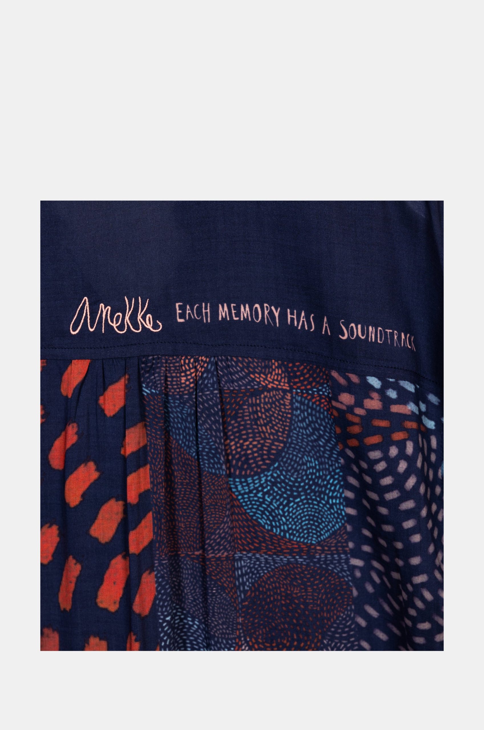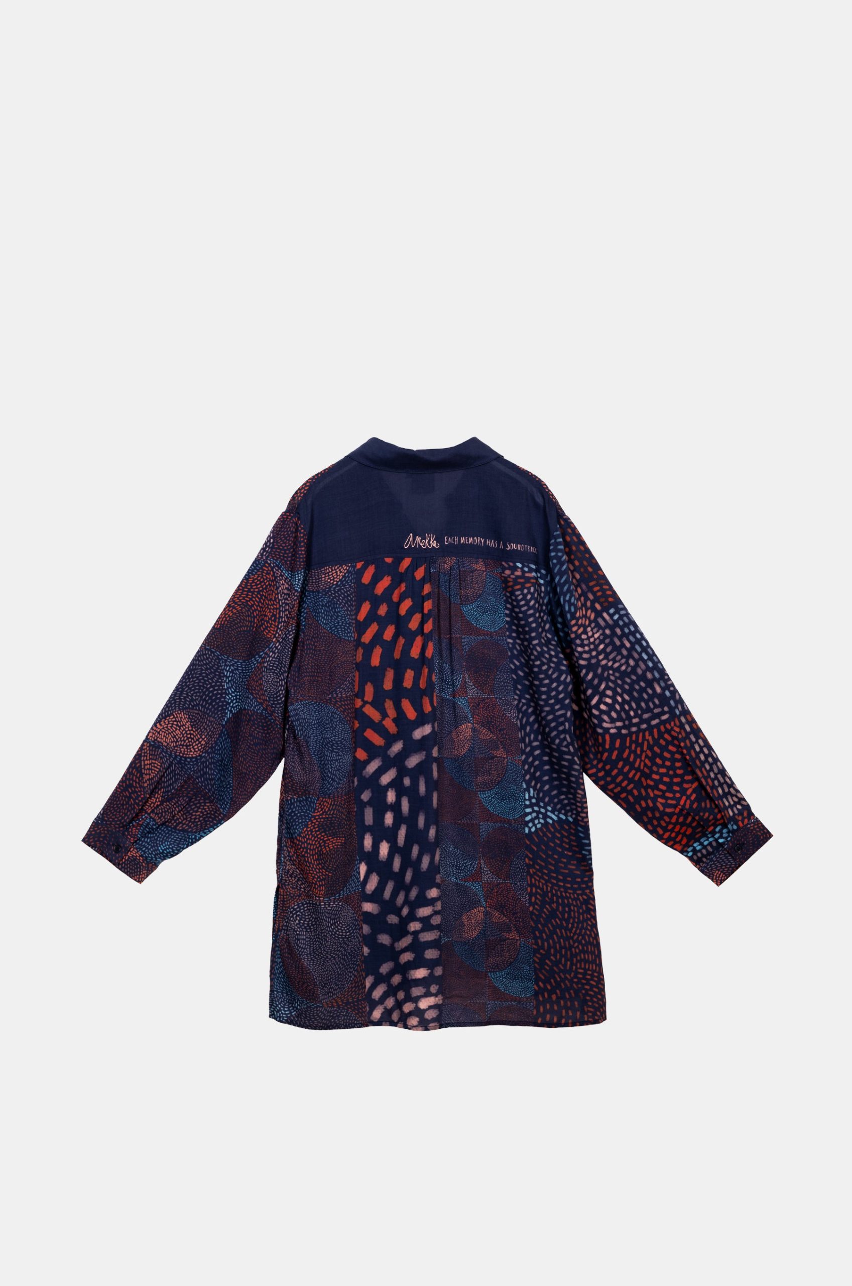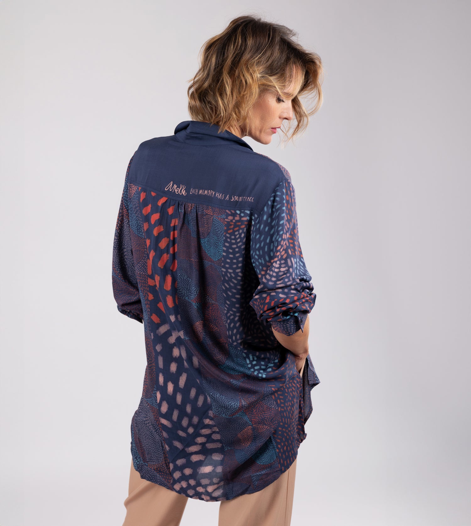 This shirt has an original print, long sleeves and button fastening. It has countless details that make it a special garment, such as the wooden buttons and the embroidery in various spots, such as the collar and back.
