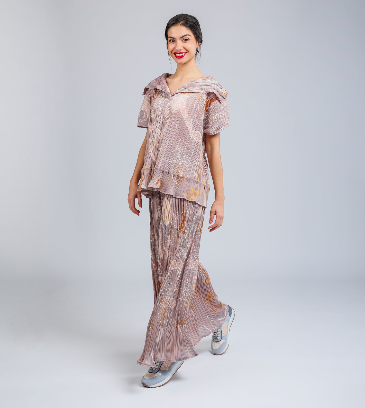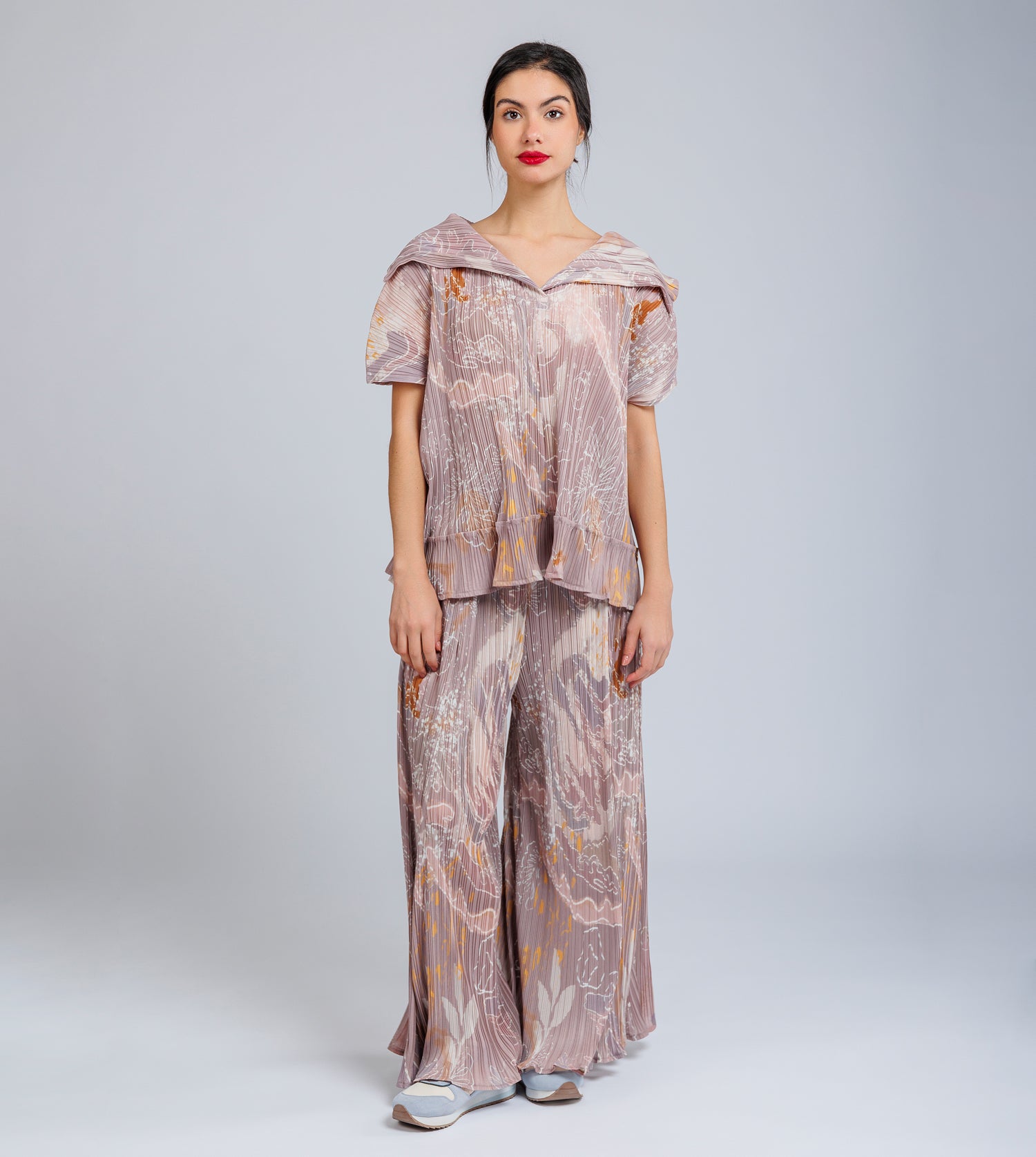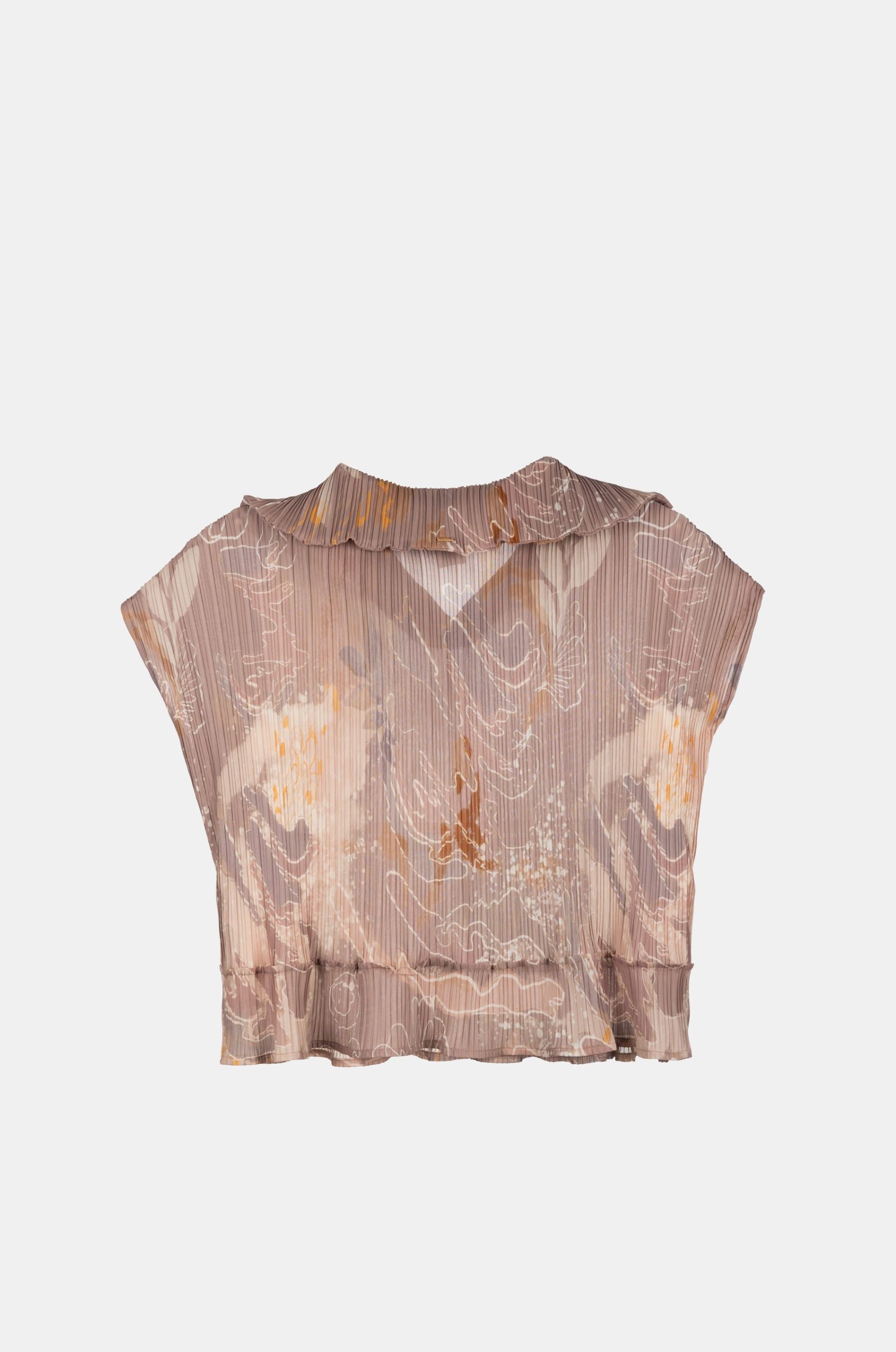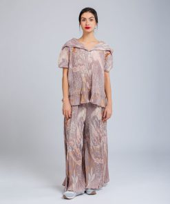 This short-sleeved printed t-shirt features pleated folds. It has an open V-neck. Get it with the matching pants to create a total Anekke look that is super stylish.