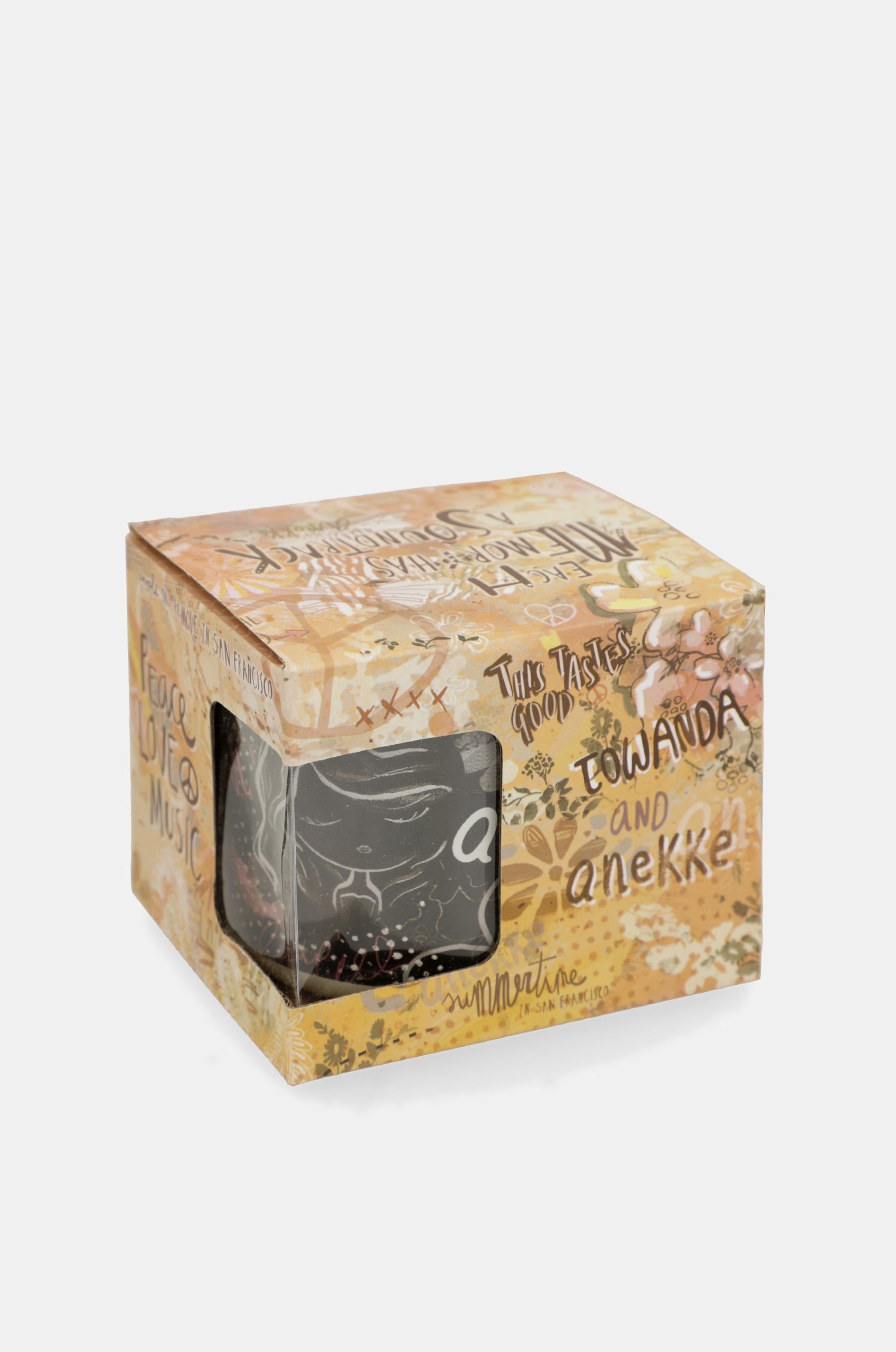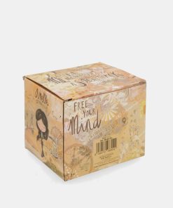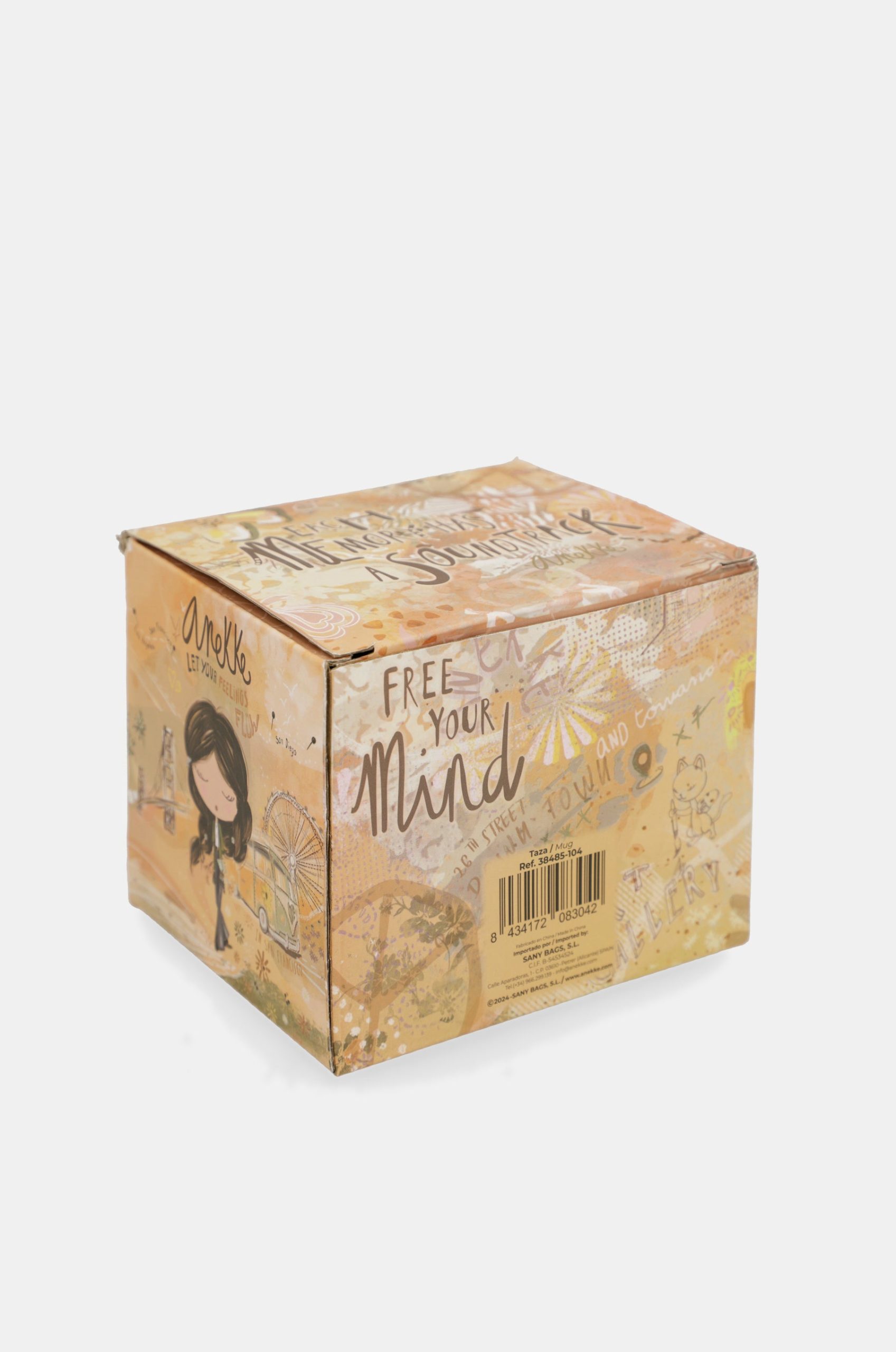 This original porcelain mug has a carefully crafted design, full of details. Its unique all-over print features inspirational phrases and motifs on every inch, as well as a removable decorative bow.