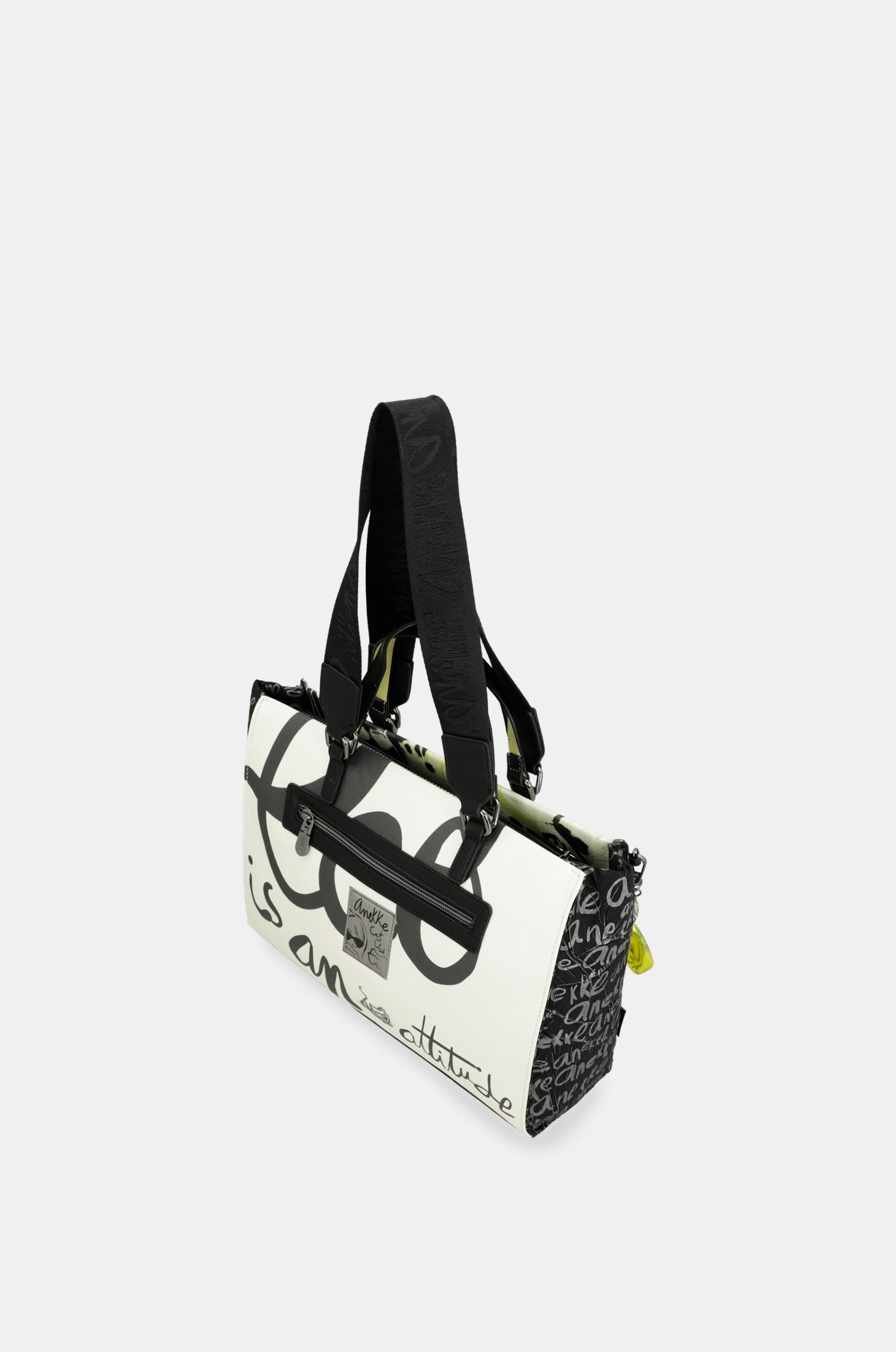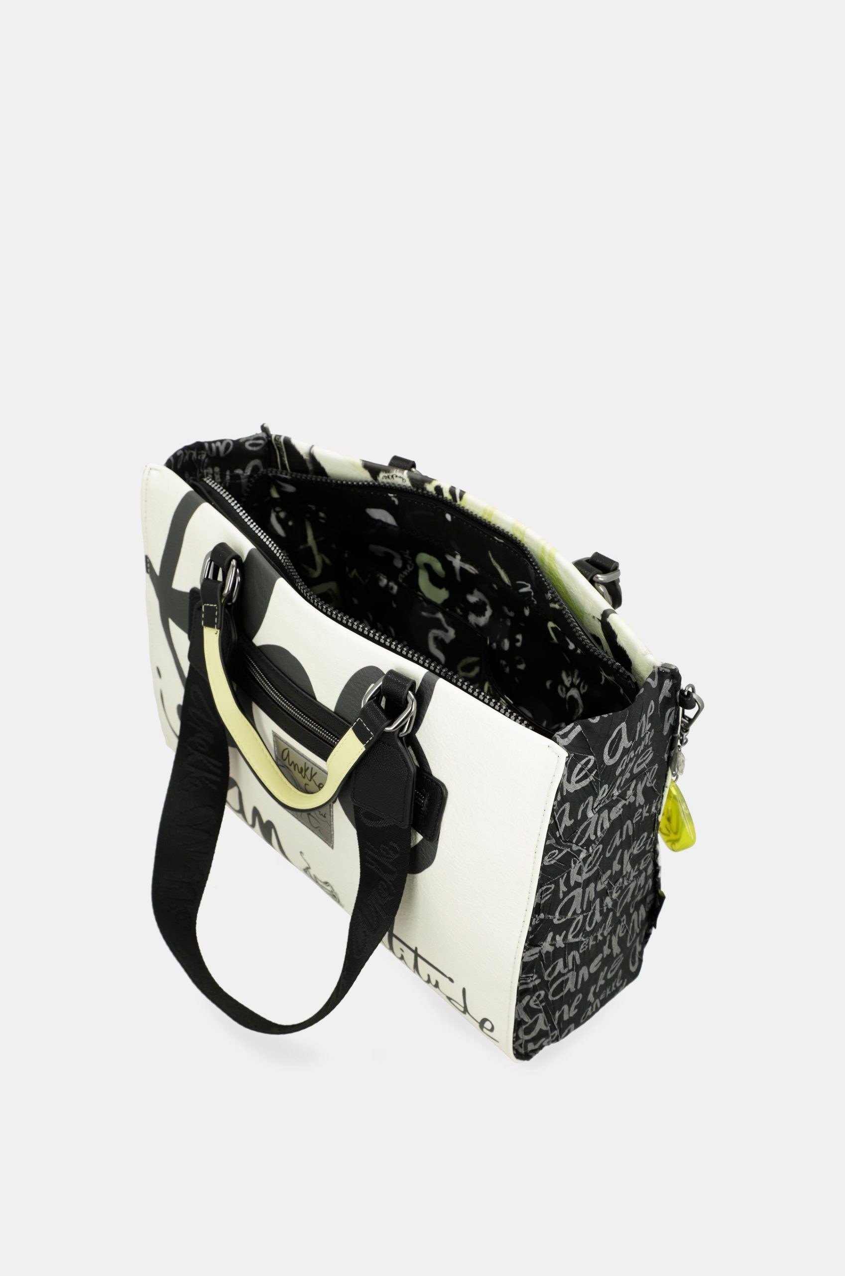 Each product in this capsule is made with 80% recycled materials and 100% love for the planet, carrying the Control Union Certifications B.V. label. This capsule is characterized by the comfort of each product, made with flexible materials perfect for everyday use. Its design combines a white base with abstract printed shapes inspired by Towanda’s silhouette, and original fluorescent accents. This is a large-sized tote bag with pockets on the back. It has a spacious lined interior and pockets. This bag has two wide shoulder straps and two handles to carry it as a briefcase. Still thinking about it? Get your new favorite from Anekke Towanda now—you’ll love it! Meow!